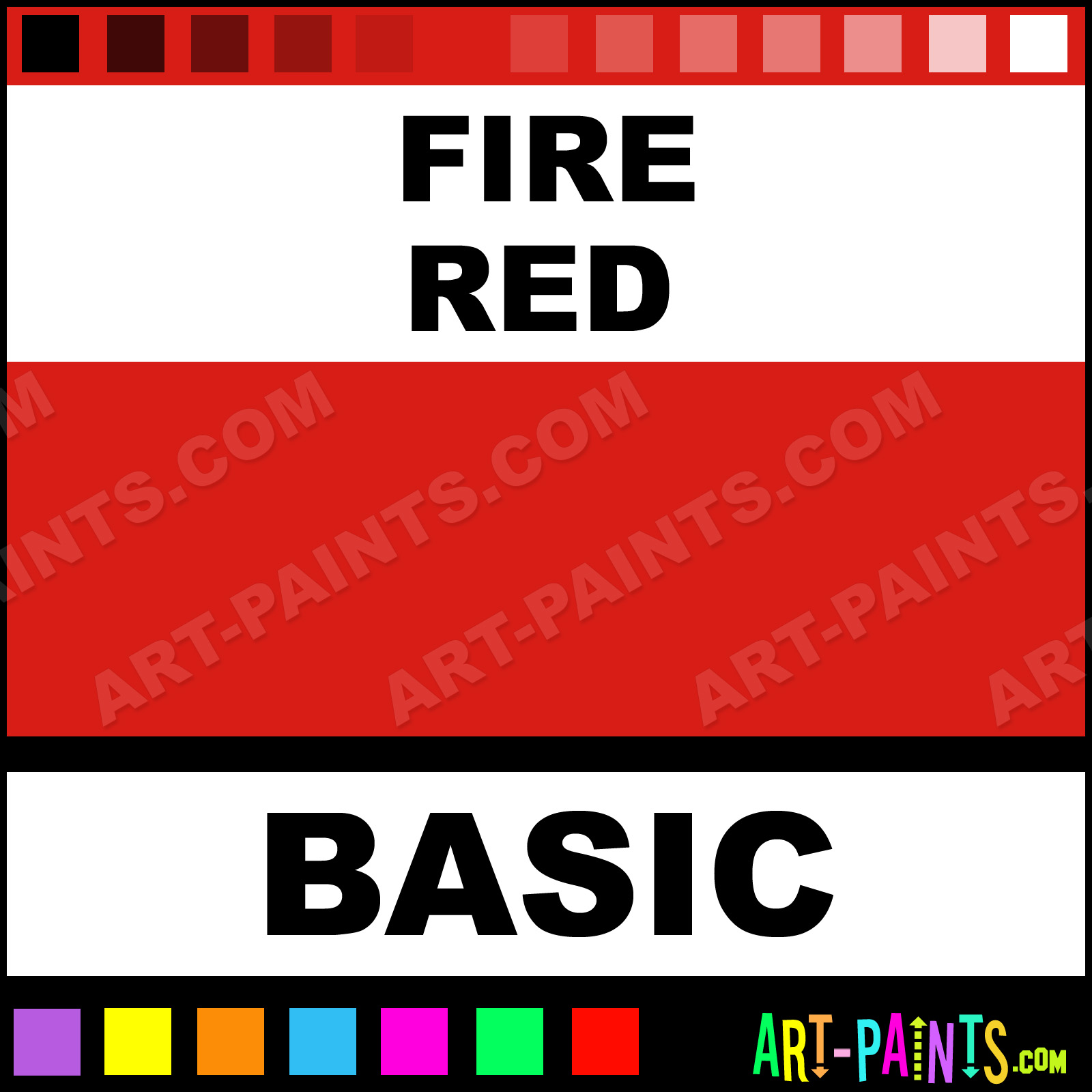 This beautiful Basic Kit Airbrush shade is called Fire Red, and comes from a company called 1 Shot. Their product number, along with the HTML color code, RGB, and CMYK codes are listed below. This Beautiful Shade of Fire Red and others can be found in the 1 Shot Basic Kit Art Spray Paint Gallery! Also be sure to browse through the other wonderful Professional Color Galleries to see more of 1 Shot Basic Kit Airbrush Brand Spray Paints and other Spray Paint Manufacturers. And as always, Paint Paint Paint!   -Art-Paints.com