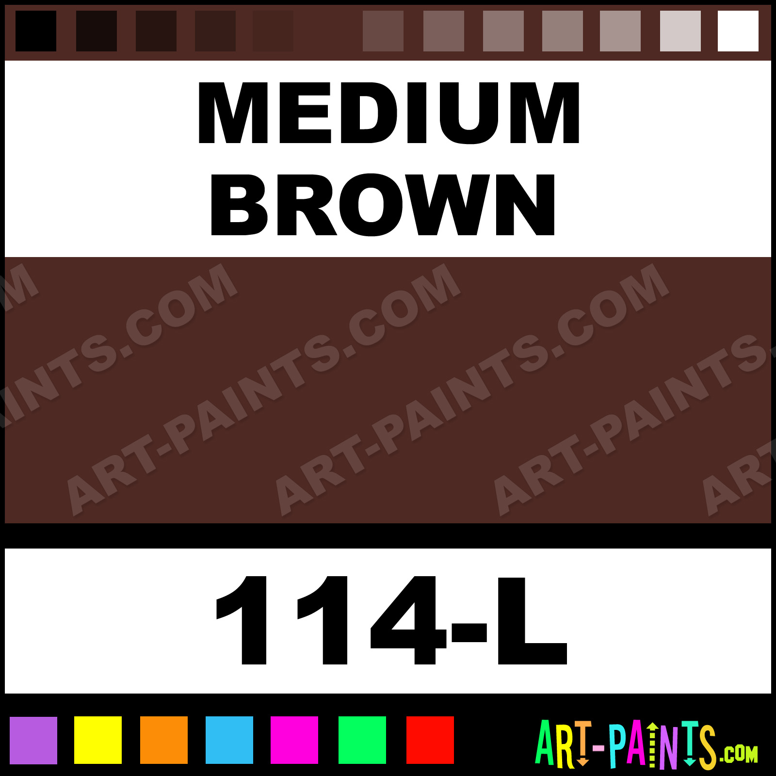 This beautiful Striping and Lettering Airbrush shade is called Medium Brown, and comes from a company called 1 Shot. Their product number, along with the HTML color code, RGB, and CMYK codes are listed below. This Beautiful Shade of Medium Brown and others can be found in the 1 Shot Striping and Lettering Art Spray Paint Gallery! Also be sure to browse through the other wonderful Professional Color Galleries to see more of 1 Shot Striping and Lettering Airbrush Brand Spray Paints and other Spray Paint Manufacturers. And as always, Paint Paint Paint!   -Art-Paints.com