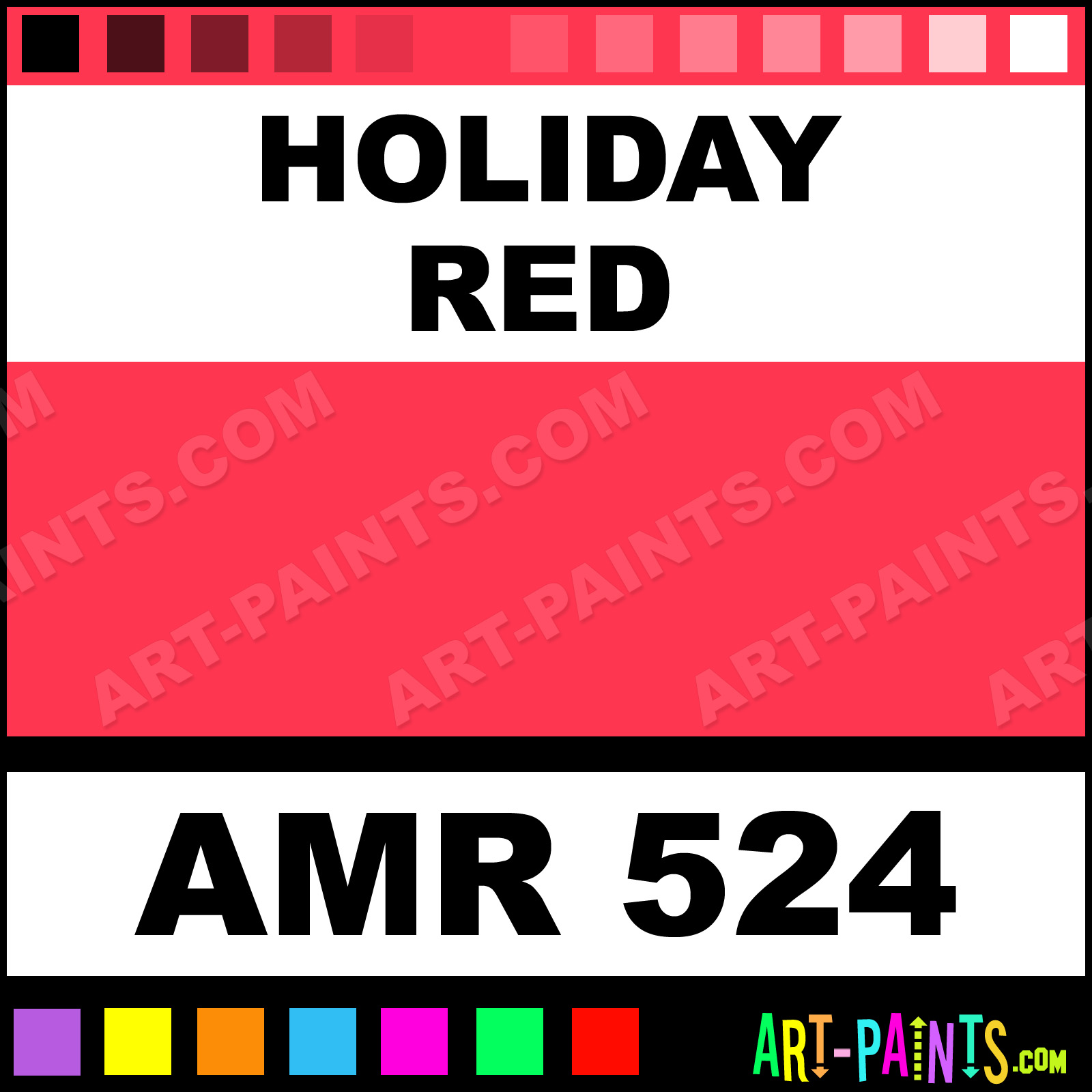 This beautiful Standard Airbrush shade is called Holiday Red, and comes from a company called AmeriMist. Their product number, along with the HTML color code, RGB, and CMYK codes are listed below. This Beautiful Shade of Holiday Red and others can be found in the AmeriMist Standard Art Spray Paint Gallery! Also be sure to browse through the other wonderful Professional Color Galleries to see more of AmeriMist Standard Airbrush Brand Spray Paints and other Spray Paint Manufacturers. And as always, Paint Paint Paint!   -Art-Paints.com