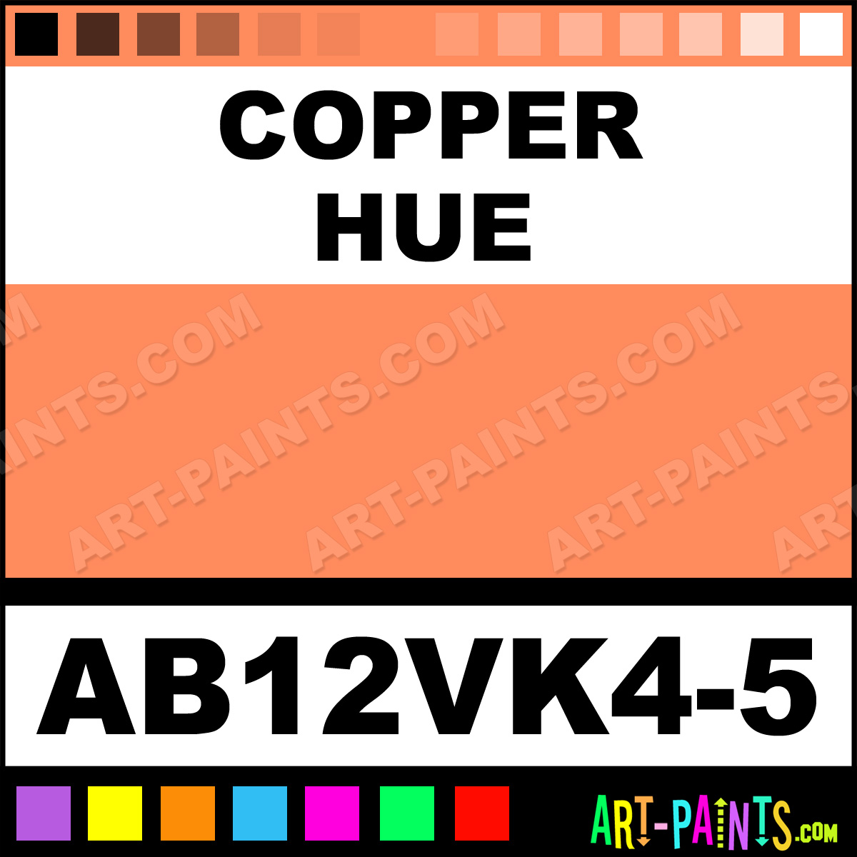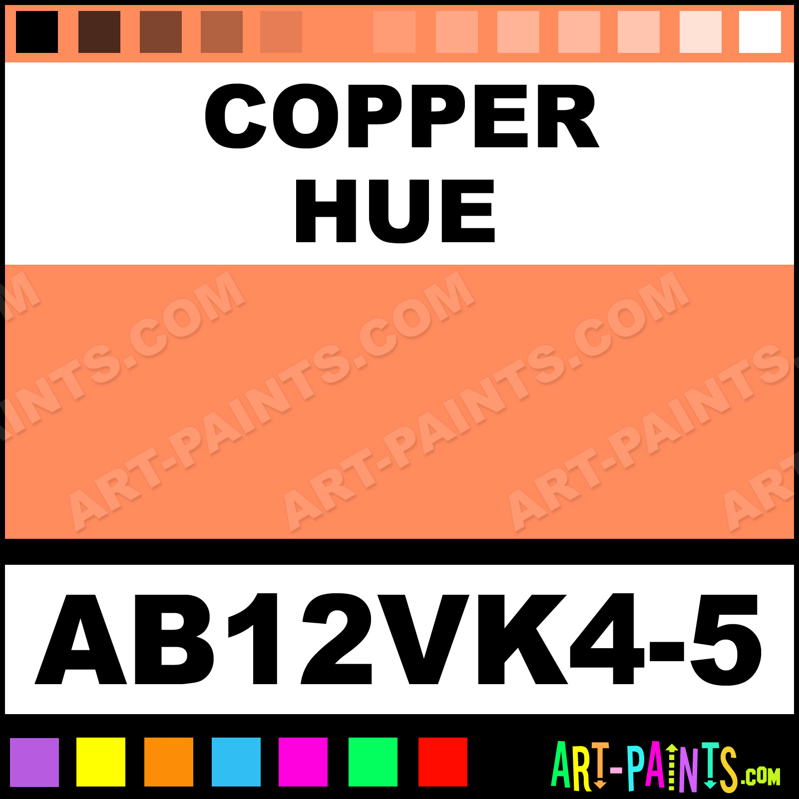 This beautiful Starter Kit 12 Airbrush shade is called Copper, and comes from a company called AmeriMist. Their product number, along with the HTML color code, RGB, and CMYK codes are listed below. This Beautiful Shade of Copper and others can be found in the AmeriMist Starter Kit 12 Art Spray Paint Gallery! Also be sure to browse through the other wonderful Professional Color Galleries to see more of AmeriMist Starter Kit 12 Airbrush Brand Spray Paints and other Spray Paint Manufacturers. And as always, Paint Paint Paint!   -Art-Paints.com