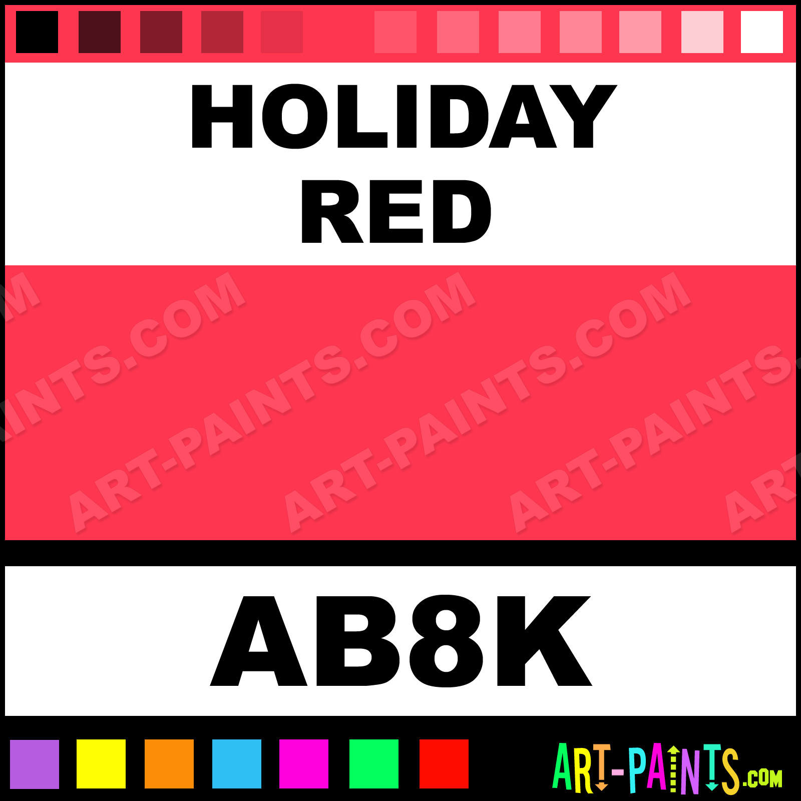 This beautiful Starter Kit 8 Airbrush shade is called Holiday Red, and comes from a company called AmeriMist. Their product number, along with the HTML color code, RGB, and CMYK codes are listed below. This Beautiful Shade of Holiday Red and others can be found in the AmeriMist Starter Kit 8 Art Spray Paint Gallery! Also be sure to browse through the other wonderful Professional Color Galleries to see more of AmeriMist Starter Kit 8 Airbrush Brand Spray Paints and other Spray Paint Manufacturers. And as always, Paint Paint Paint!   -Art-Paints.com