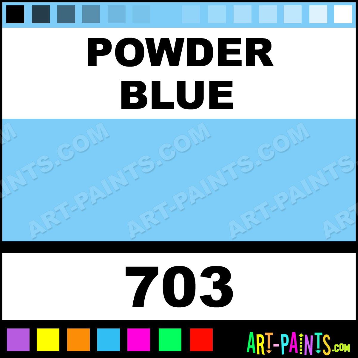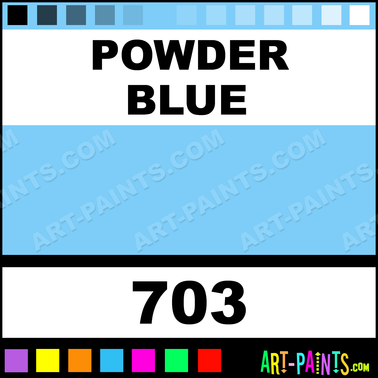 This beautiful Air Opaque Supplementary Airbrush shade is called Powder Blue, and comes from a company called Badger. Their product number, along with the HTML color code, RGB, and CMYK codes are listed below. This Beautiful Shade of Powder Blue and others can be found in the Badger Air Opaque Supplementary Art Spray Paint Gallery! Also be sure to browse through the other wonderful Professional Color Galleries to see more of Badger Air Opaque Supplementary Airbrush Brand Spray Paints and other Spray Paint Manufacturers. And as always, Paint Paint Paint!   -Art-Paints.com