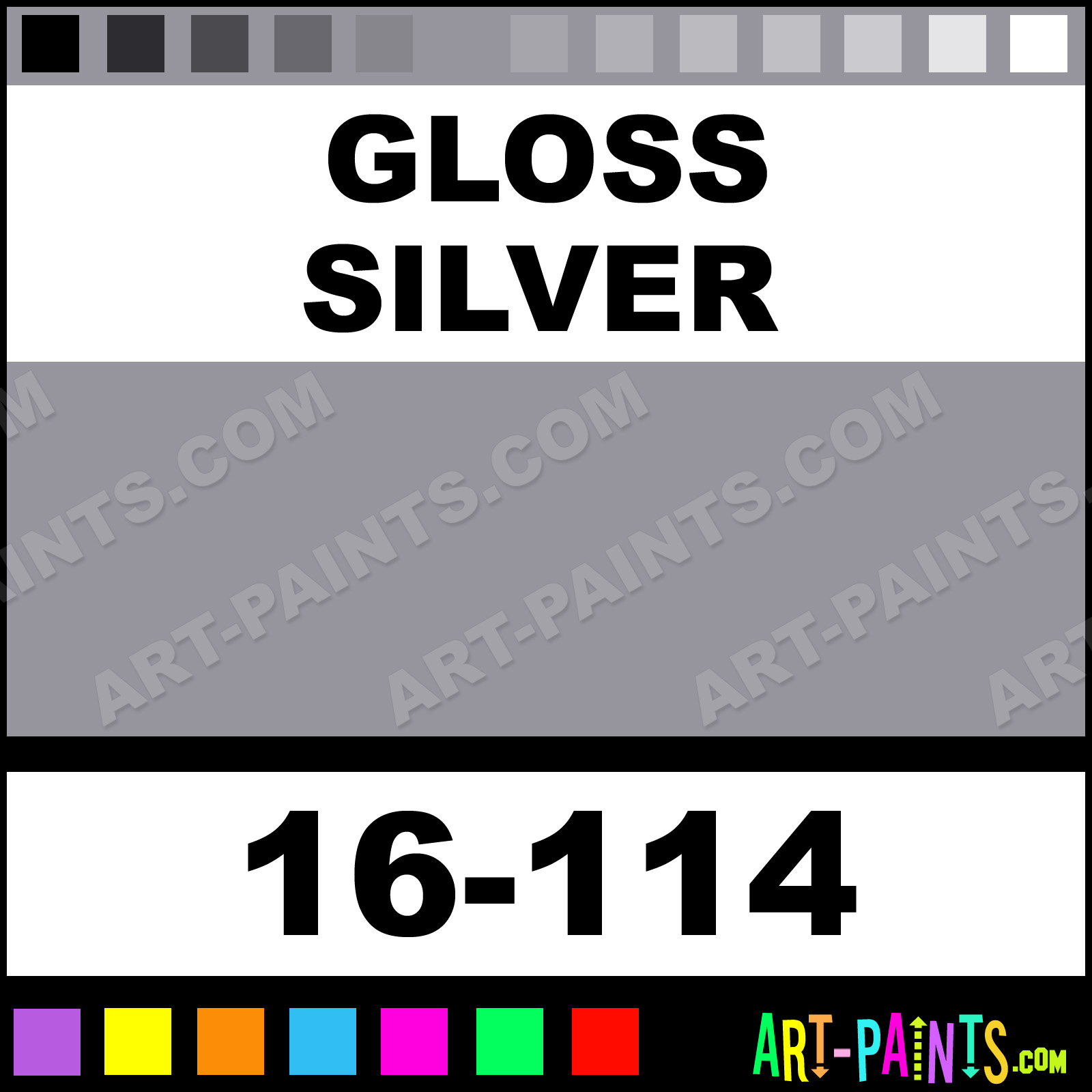 This beautiful ModelFlex Automotive Airbrush shade is called Gloss Silver, and comes from a company called Badger. Their product number, along with the HTML color code, RGB, and CMYK codes are listed below. This Beautiful Shade of Gloss Silver and others can be found in the Badger ModelFlex Automotive Art Spray Paint Gallery! Also be sure to browse through the other wonderful Professional Color Galleries to see more of Badger ModelFlex Automotive Airbrush Brand Spray Paints and other Spray Paint Manufacturers. And as always, Paint Paint Paint!   -Art-Paints.com