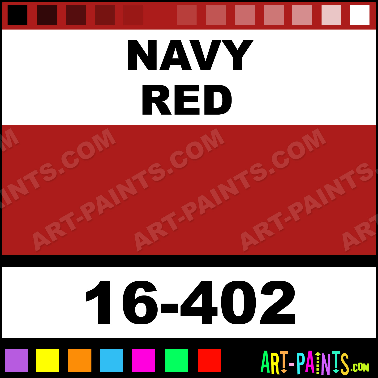 This beautiful ModelFlex Marine Airbrush shade is called Navy Red, and comes from a company called Badger. Their product number, along with the HTML color code, RGB, and CMYK codes are listed below. This Beautiful Shade of Navy Red and others can be found in the Badger ModelFlex Marine Art Spray Paint Gallery! Also be sure to browse through the other wonderful Professional Color Galleries to see more of Badger ModelFlex Marine Airbrush Brand Spray Paints and other Spray Paint Manufacturers. And as always, Paint Paint Paint!   -Art-Paints.com