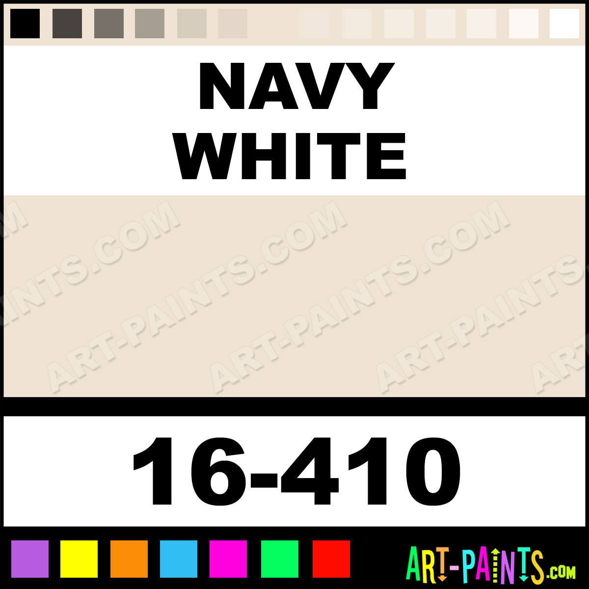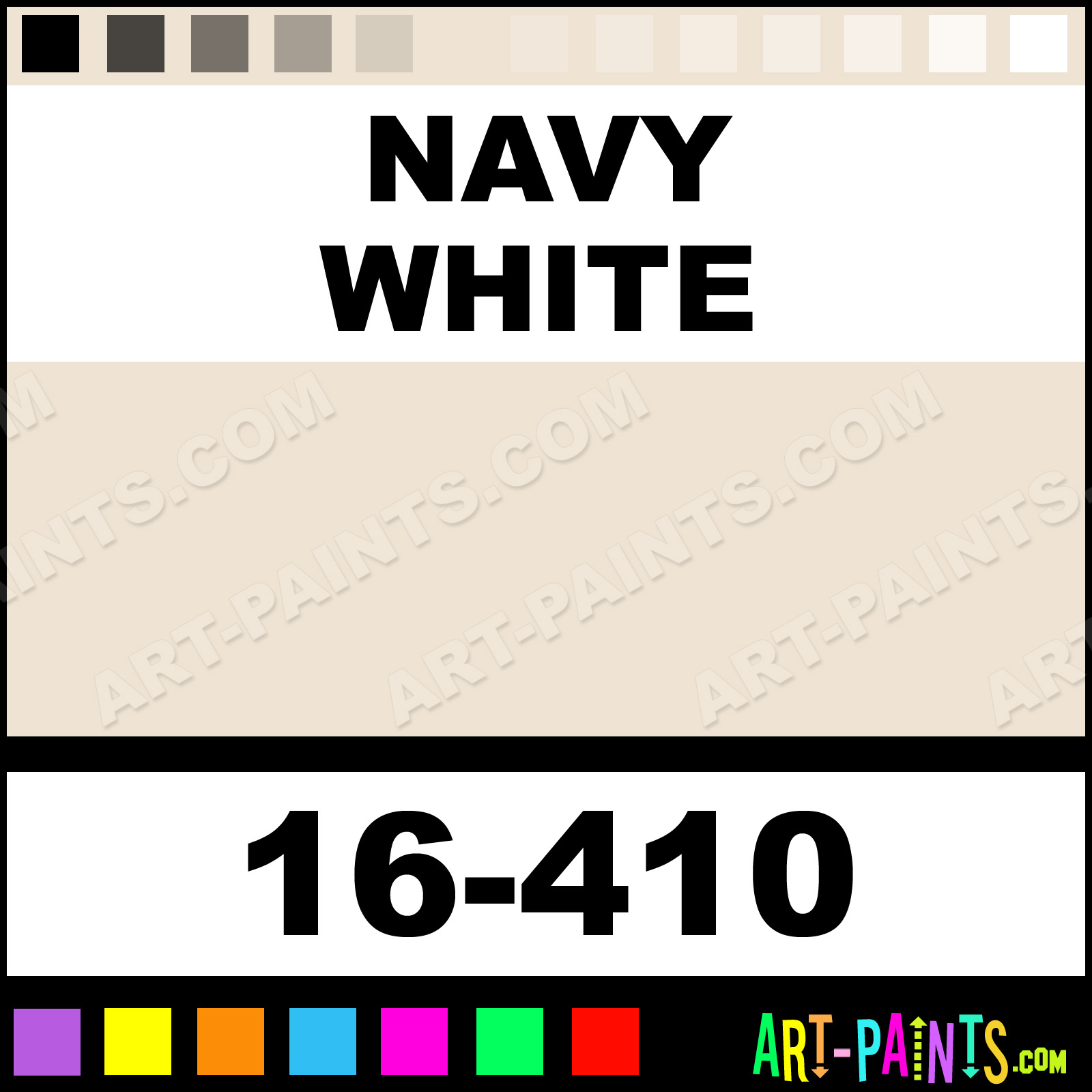 This beautiful ModelFlex Marine Airbrush shade is called Navy White, and comes from a company called Badger. Their product number, along with the HTML color code, RGB, and CMYK codes are listed below. This Beautiful Shade of Navy White and others can be found in the Badger ModelFlex Marine Art Spray Paint Gallery! Also be sure to browse through the other wonderful Professional Color Galleries to see more of Badger ModelFlex Marine Airbrush Brand Spray Paints and other Spray Paint Manufacturers. And as always, Paint Paint Paint!   -Art-Paints.com
