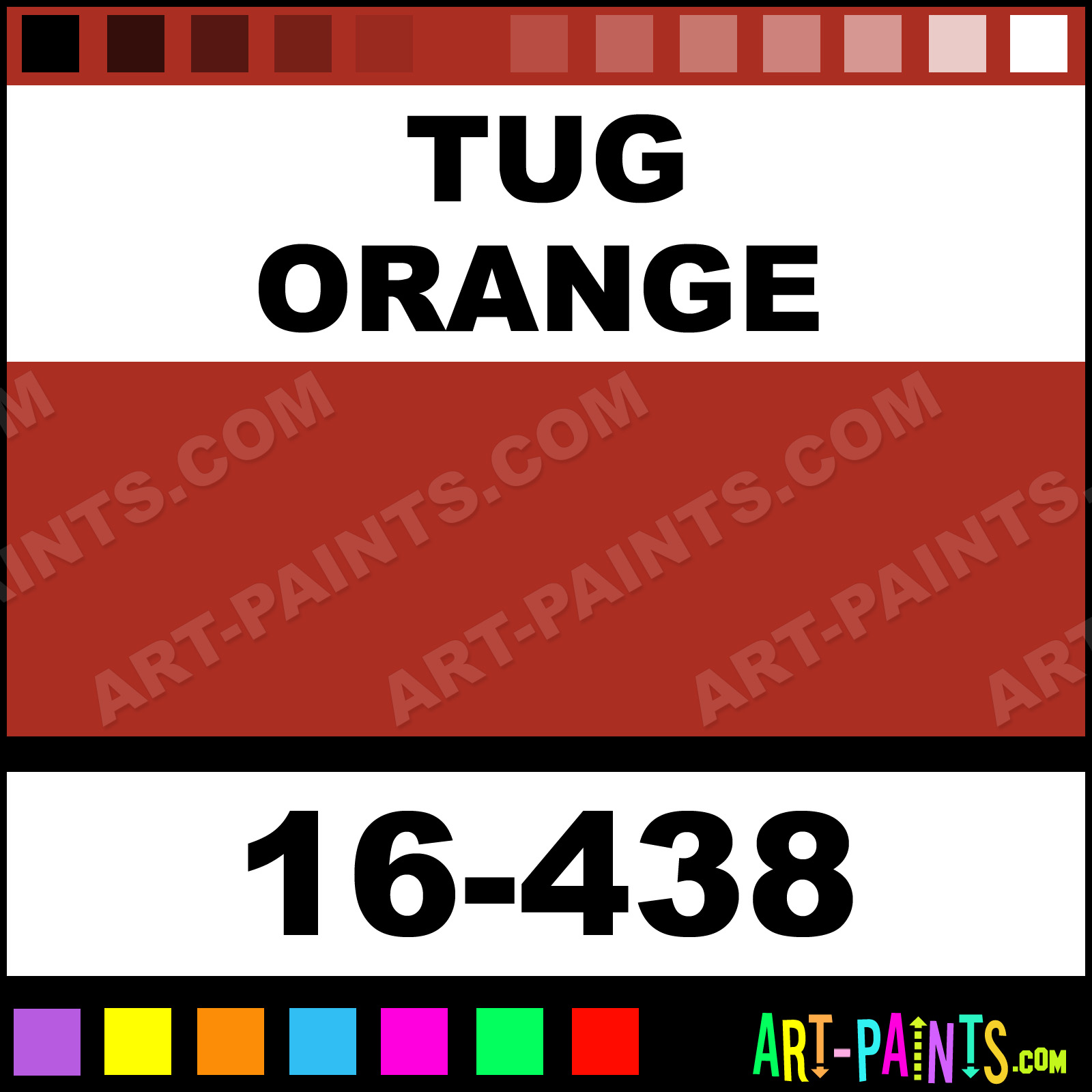 This beautiful ModelFlex Marine Airbrush shade is called Tug Orange, and comes from a company called Badger. Their product number, along with the HTML color code, RGB, and CMYK codes are listed below. This Beautiful Shade of Tug Orange and others can be found in the Badger ModelFlex Marine Art Spray Paint Gallery! Also be sure to browse through the other wonderful Professional Color Galleries to see more of Badger ModelFlex Marine Airbrush Brand Spray Paints and other Spray Paint Manufacturers. And as always, Paint Paint Paint!   -Art-Paints.com