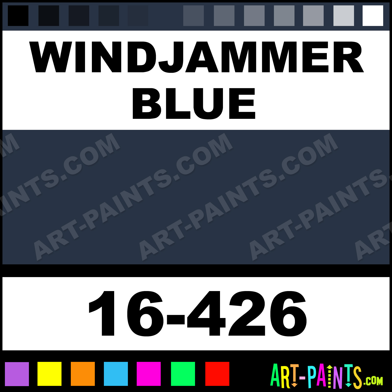 This beautiful ModelFlex Marine Airbrush shade is called Windjammer Blue, and comes from a company called Badger. Their product number, along with the HTML color code, RGB, and CMYK codes are listed below. This Beautiful Shade of Windjammer Blue and others can be found in the Badger ModelFlex Marine Art Spray Paint Gallery! Also be sure to browse through the other wonderful Professional Color Galleries to see more of Badger ModelFlex Marine Airbrush Brand Spray Paints and other Spray Paint Manufacturers. And as always, Paint Paint Paint!   -Art-Paints.com