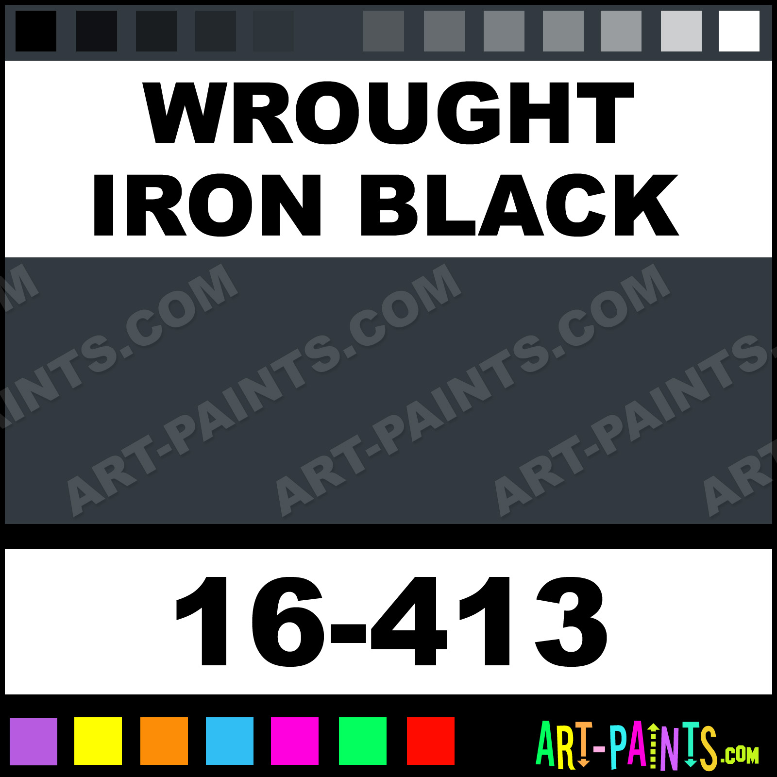 This beautiful ModelFlex Marine Airbrush shade is called Wrought Iron Black, and comes from a company called Badger. Their product number, along with the HTML color code, RGB, and CMYK codes are listed below. This Beautiful Shade of Wrought Iron Black and others can be found in the Badger ModelFlex Marine Art Spray Paint Gallery! Also be sure to browse through the other wonderful Professional Color Galleries to see more of Badger ModelFlex Marine Airbrush Brand Spray Paints and other Spray Paint Manufacturers. And as always, Paint Paint Paint!   -Art-Paints.com