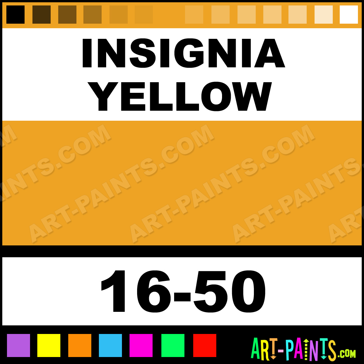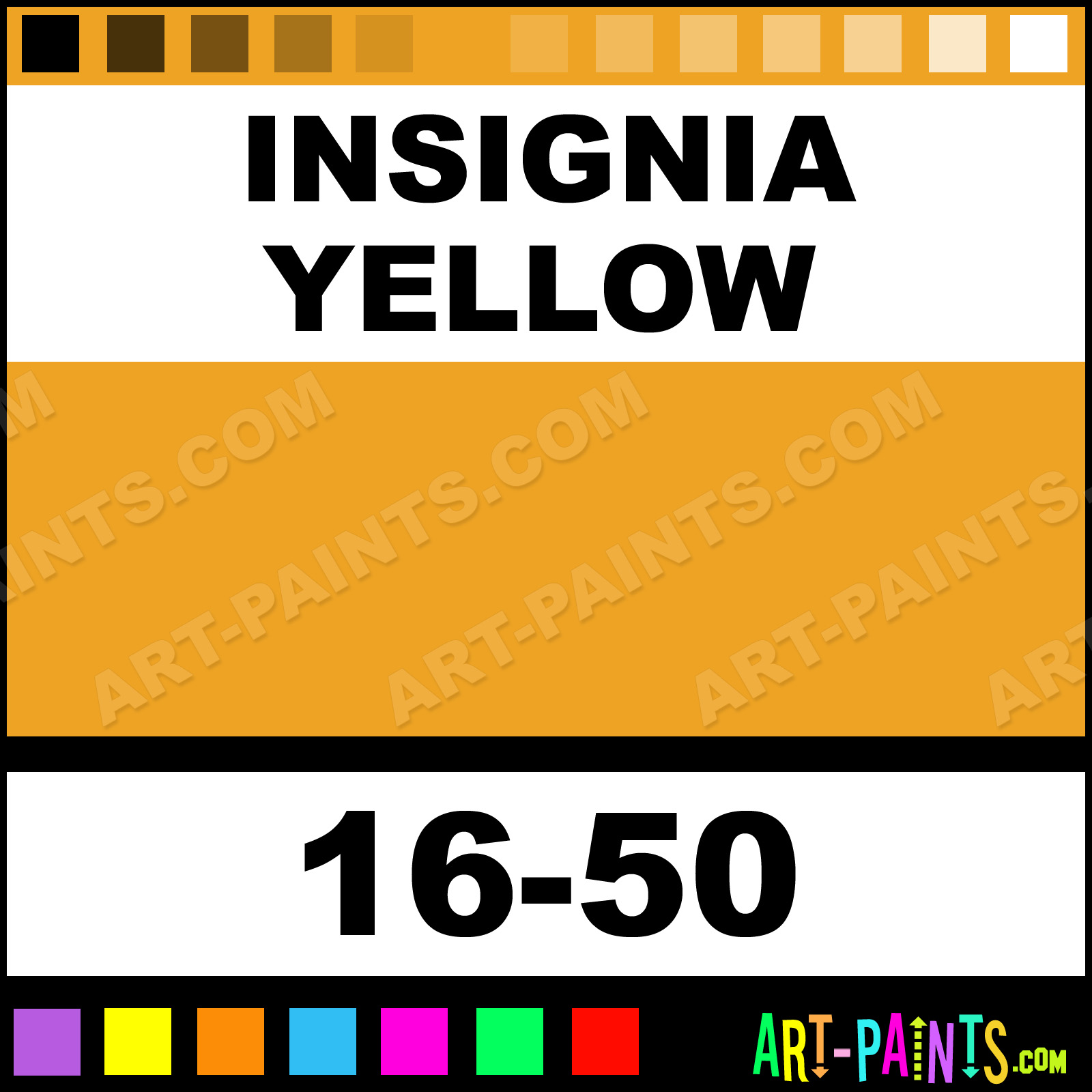 This beautiful ModelFlex Railroad Airbrush shade is called Insignia Yellow, and comes from a company called Badger. Their product number, along with the HTML color code, RGB, and CMYK codes are listed below. This Beautiful Shade of Insignia Yellow and others can be found in the Badger ModelFlex Railroad Art Spray Paint Gallery! Also be sure to browse through the other wonderful Professional Color Galleries to see more of Badger ModelFlex Railroad Airbrush Brand Spray Paints and other Spray Paint Manufacturers. And as always, Paint Paint Paint!   -Art-Paints.com