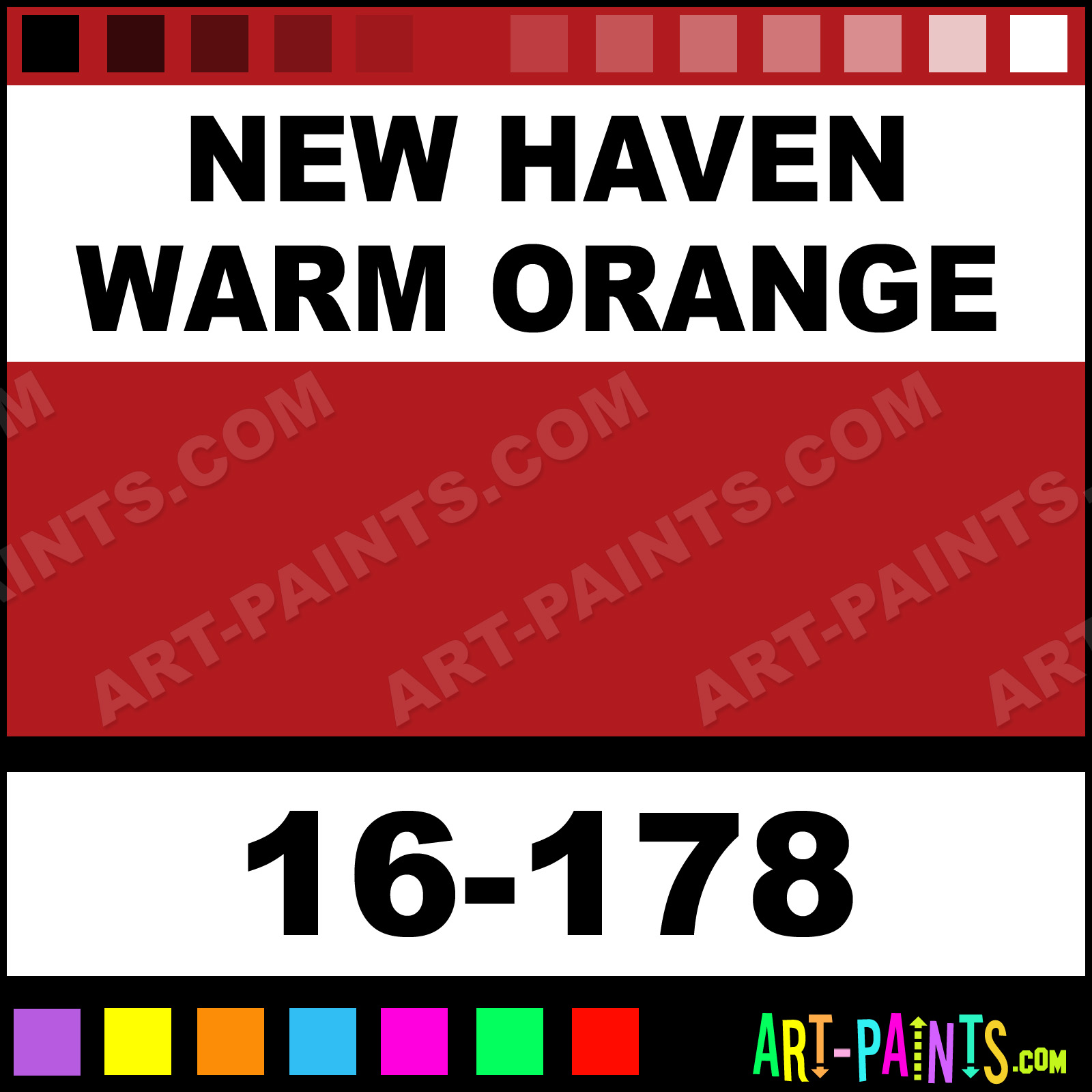 This beautiful ModelFlex Railroad Airbrush shade is called New Haven Warm Orange, and comes from a company called Badger. Their product number, along with the HTML color code, RGB, and CMYK codes are listed below. This Beautiful Shade of New Haven Warm Orange and others can be found in the Badger ModelFlex Railroad Art Spray Paint Gallery! Also be sure to browse through the other wonderful Professional Color Galleries to see more of Badger ModelFlex Railroad Airbrush Brand Spray Paints and other Spray Paint Manufacturers. And as always, Paint Paint Paint!   -Art-Paints.com
