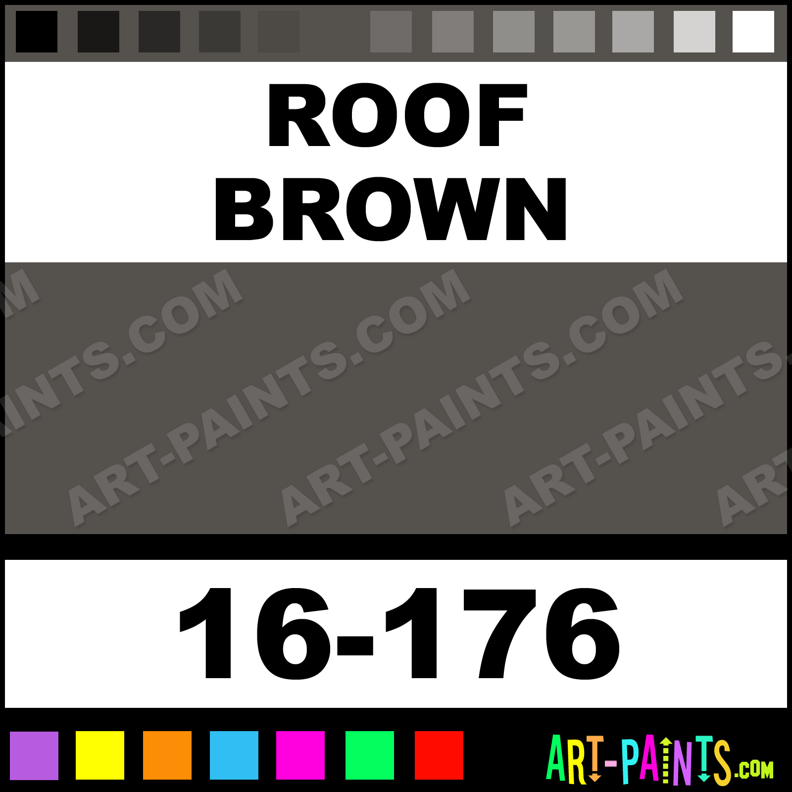 This beautiful ModelFlex Railroad Airbrush shade is called Roof Brown, and comes from a company called Badger. Their product number, along with the HTML color code, RGB, and CMYK codes are listed below. This Beautiful Shade of Roof Brown and others can be found in the Badger ModelFlex Railroad Art Spray Paint Gallery! Also be sure to browse through the other wonderful Professional Color Galleries to see more of Badger ModelFlex Railroad Airbrush Brand Spray Paints and other Spray Paint Manufacturers. And as always, Paint Paint Paint!   -Art-Paints.com