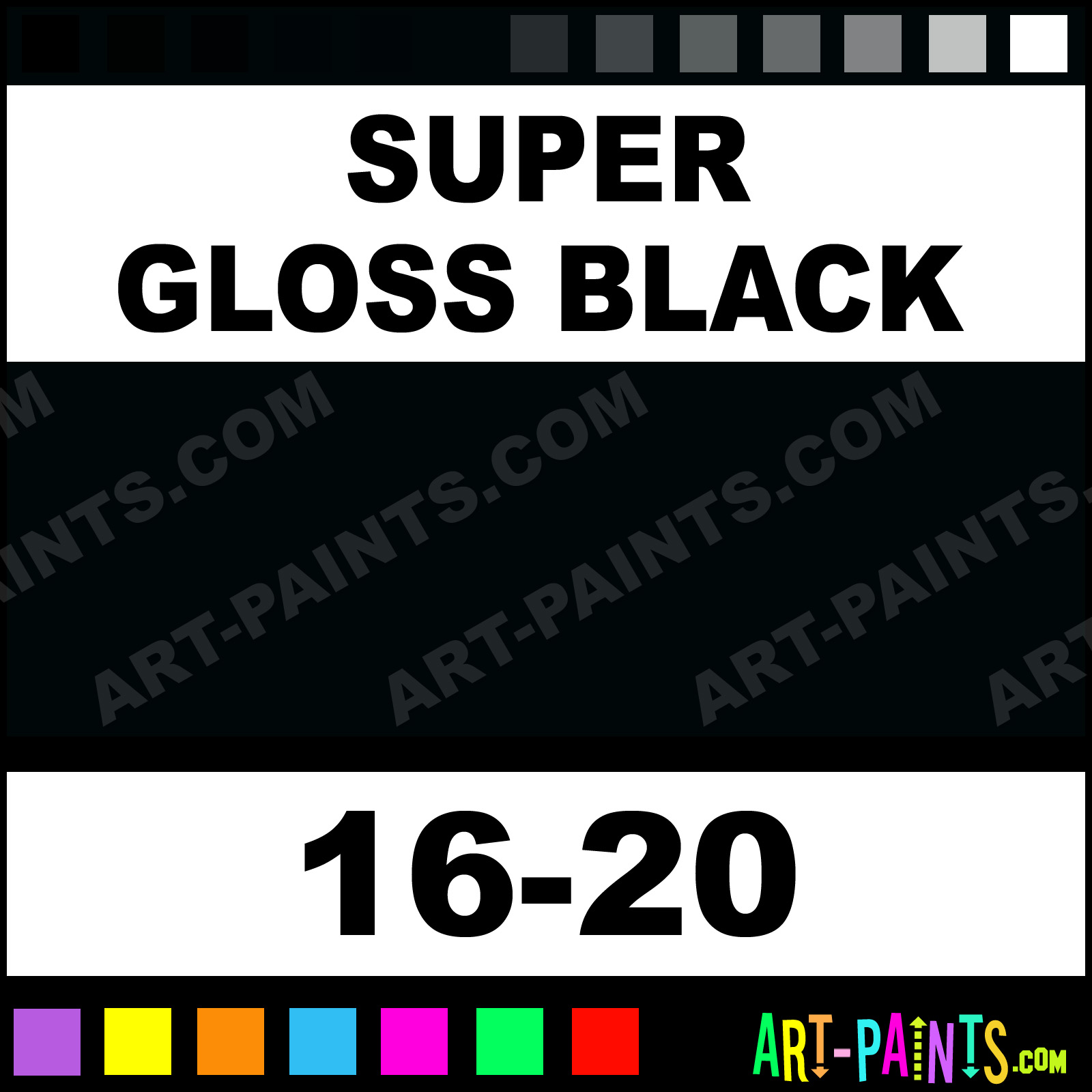 This beautiful ModelFlex Railroad Airbrush shade is called Super Gloss Black, and comes from a company called Badger. Their product number, along with the HTML color code, RGB, and CMYK codes are listed below. This Beautiful Shade of Super Gloss Black and others can be found in the Badger ModelFlex Railroad Art Spray Paint Gallery! Also be sure to browse through the other wonderful Professional Color Galleries to see more of Badger ModelFlex Railroad Airbrush Brand Spray Paints and other Spray Paint Manufacturers. And as always, Paint Paint Paint!   -Art-Paints.com