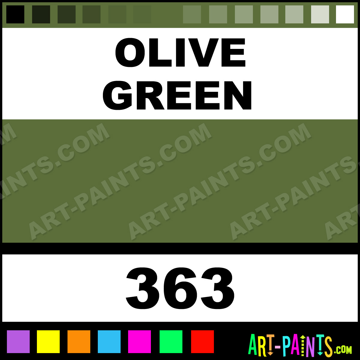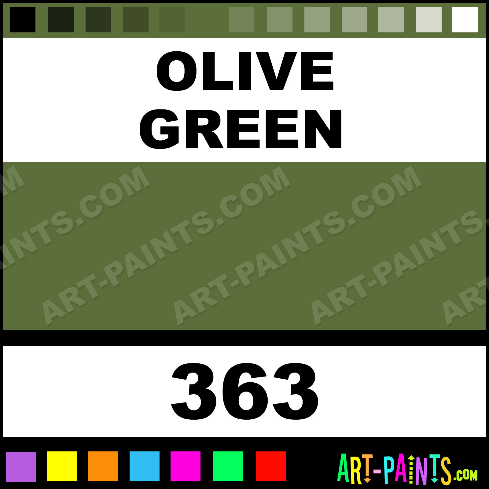 This beautiful FW Artists Airbrush shade is called Olive Green, and comes from a company called Daler Rowney. Their product number, along with the HTML color code, RGB, and CMYK codes are listed below. This Beautiful Shade of Olive Green and others can be found in the Daler Rowney FW Artists Art Spray Paint Gallery! Also be sure to browse through the other wonderful Professional Color Galleries to see more of Daler Rowney FW Artists Airbrush Brand Spray Paints and other Spray Paint Manufacturers. And as always, Paint Paint Paint!   -Art-Paints.com