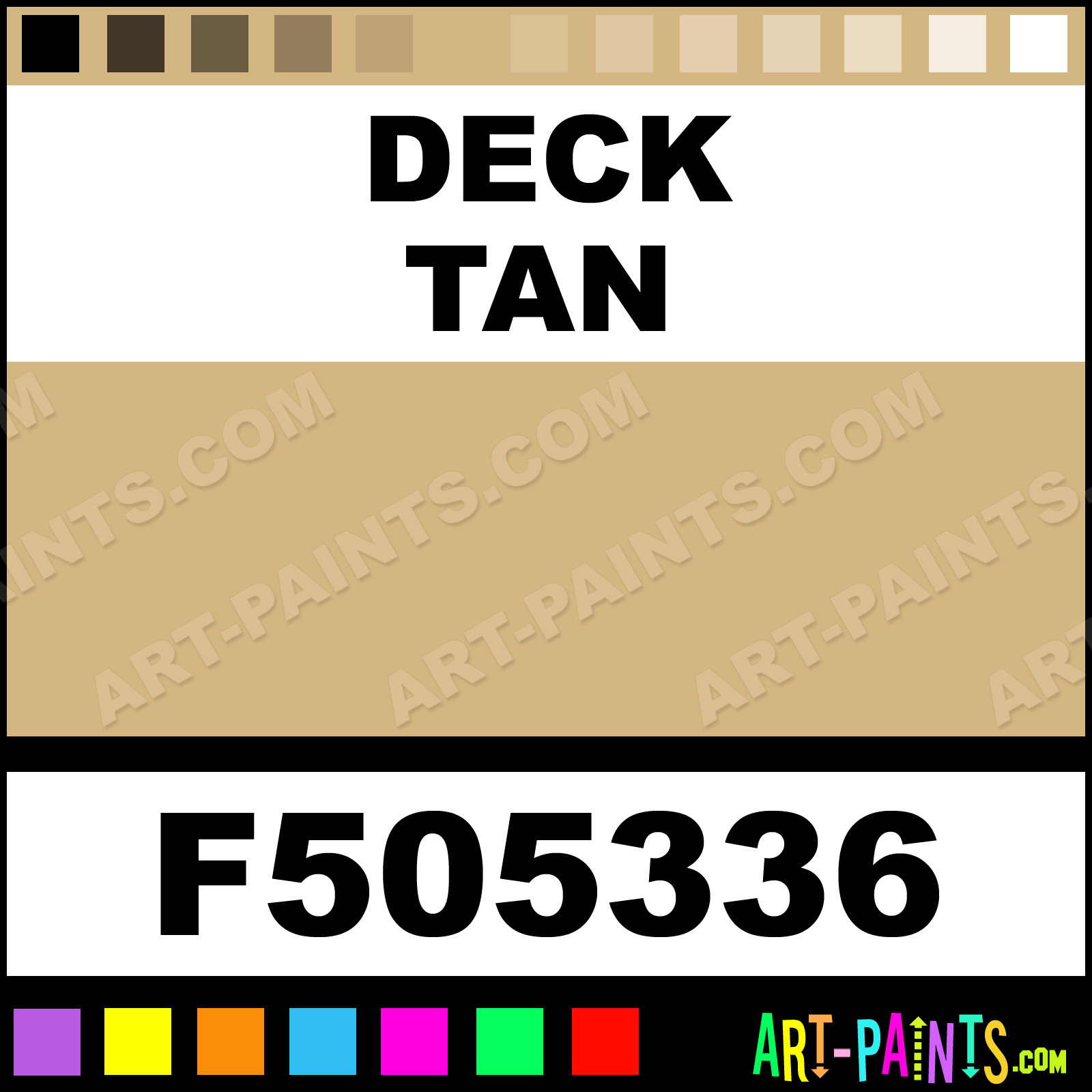 This beautiful Military Model Airbrush shade is called Deck Tan, and comes from a company called Floquil. Their product number, along with the HTML color code, RGB, and CMYK codes are listed below. This Beautiful Shade of Deck Tan and others can be found in the Floquil Military Model Art Spray Paint Gallery! Also be sure to browse through the other wonderful Professional Color Galleries to see more of Floquil Military Model Airbrush Brand Spray Paints and other Spray Paint Manufacturers. And as always, Paint Paint Paint!   -Art-Paints.com