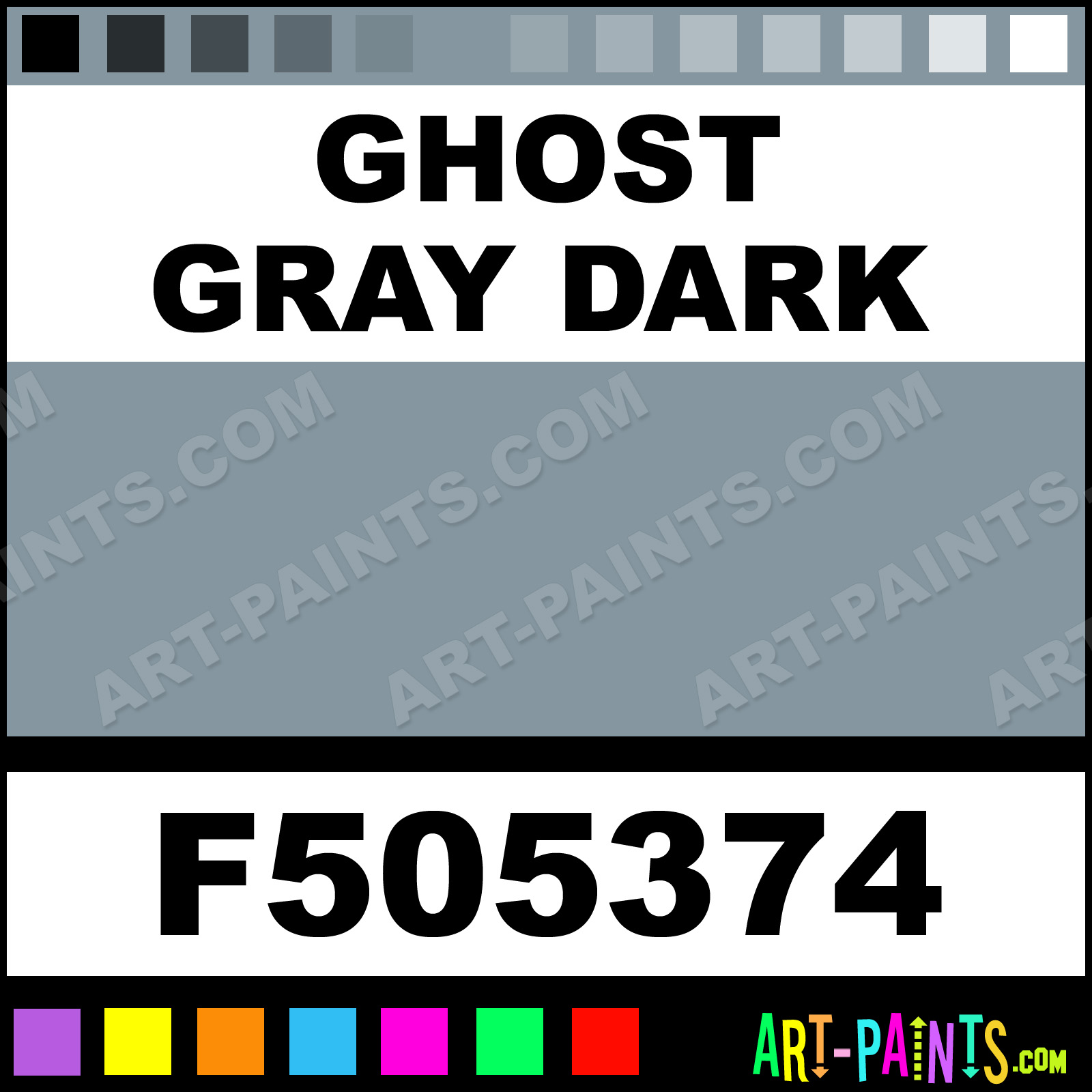 This beautiful Military Model Airbrush shade is called Ghost Gray Dark, and comes from a company called Floquil. Their product number, along with the HTML color code, RGB, and CMYK codes are listed below. This Beautiful Shade of Ghost Gray Dark and others can be found in the Floquil Military Model Art Spray Paint Gallery! Also be sure to browse through the other wonderful Professional Color Galleries to see more of Floquil Military Model Airbrush Brand Spray Paints and other Spray Paint Manufacturers. And as always, Paint Paint Paint!   -Art-Paints.com