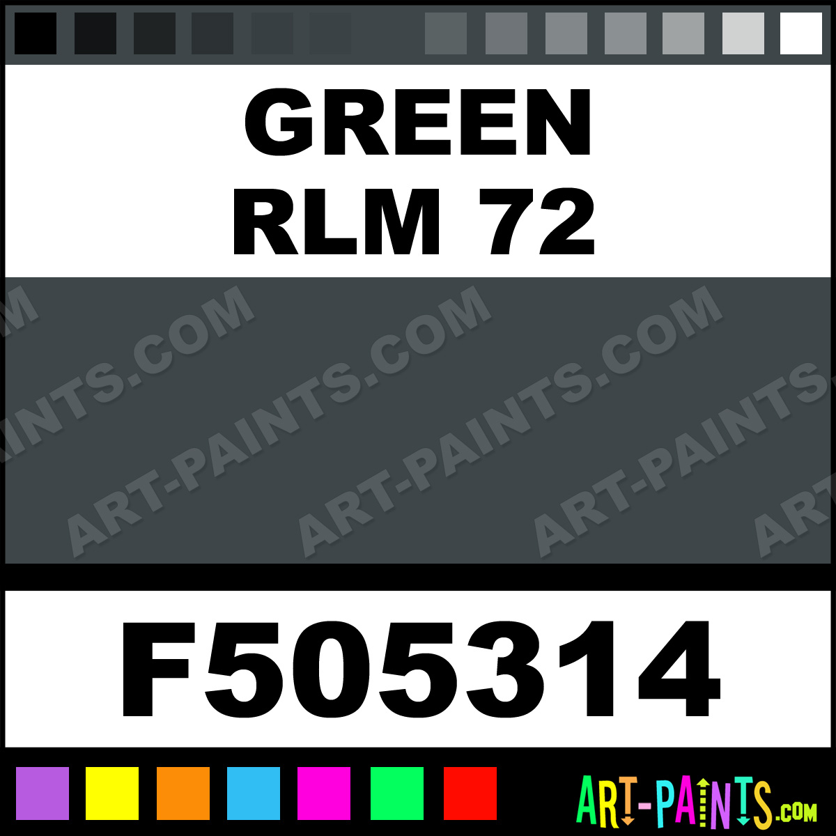 This beautiful Military Model Airbrush shade is called Green RLM 72, and comes from a company called Floquil. Their product number, along with the HTML color code, RGB, and CMYK codes are listed below. This Beautiful Shade of Green RLM 72 and others can be found in the Floquil Military Model Art Spray Paint Gallery! Also be sure to browse through the other wonderful Professional Color Galleries to see more of Floquil Military Model Airbrush Brand Spray Paints and other Spray Paint Manufacturers. And as always, Paint Paint Paint!   -Art-Paints.com