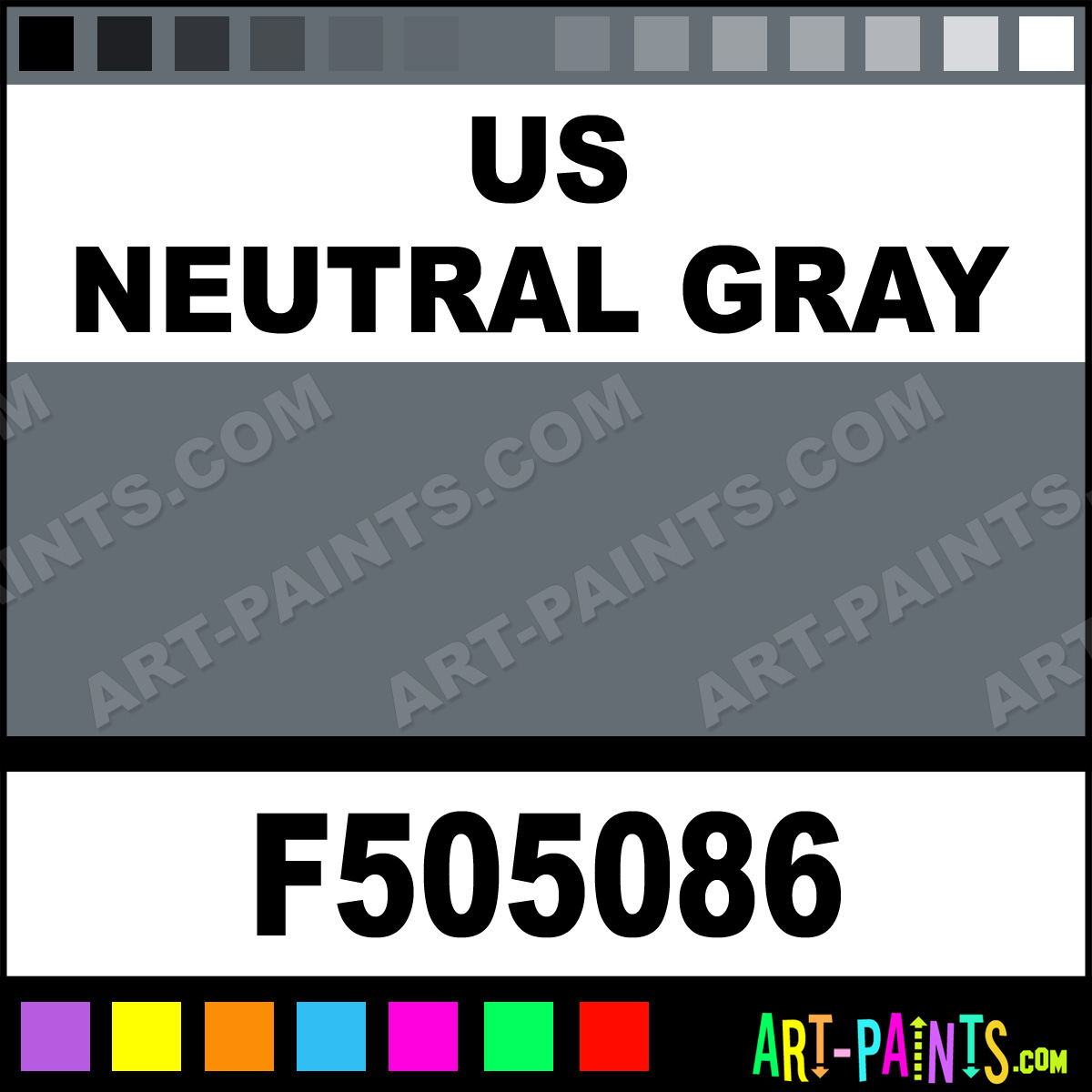 This beautiful Military Model Airbrush shade is called US Neutral Gray, and comes from a company called Floquil. Their product number, along with the HTML color code, RGB, and CMYK codes are listed below. This Beautiful Shade of US Neutral Gray and others can be found in the Floquil Military Model Art Spray Paint Gallery! Also be sure to browse through the other wonderful Professional Color Galleries to see more of Floquil Military Model Airbrush Brand Spray Paints and other Spray Paint Manufacturers. And as always, Paint Paint Paint!   -Art-Paints.com