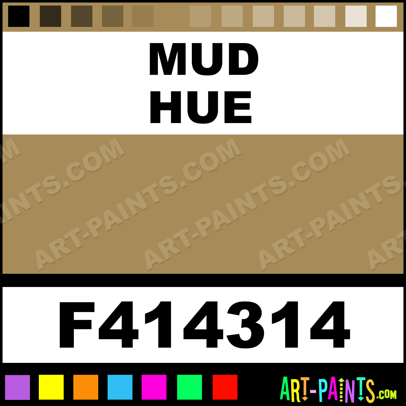 This beautiful Railroad Acrylics Airbrush shade is called Mud, and comes from a company called Floquil. Their product number, along with the HTML color code, RGB, and CMYK codes are listed below. This Beautiful Shade of Mud and others can be found in the Floquil Railroad Acrylics Art Spray Paint Gallery! Also be sure to browse through the other wonderful Professional Color Galleries to see more of Floquil Railroad Acrylics Airbrush Brand Spray Paints and other Spray Paint Manufacturers. And as always, Paint Paint Paint!   -Art-Paints.com