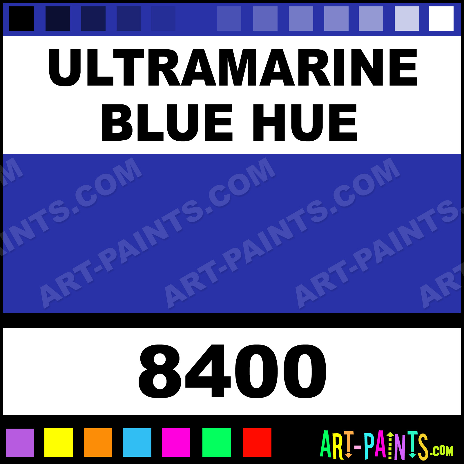 This beautiful Opaque Airbrush shade is called Ultramarine Blue Hue, and comes from a company called Golden. Their product number, along with the HTML color code, RGB, and CMYK codes are listed below. This Beautiful Shade of Ultramarine Blue Hue and others can be found in the Golden Opaque Art Spray Paint Gallery! Also be sure to browse through the other wonderful Professional Color Galleries to see more of Golden Opaque Airbrush Brand Spray Paints and other Spray Paint Manufacturers. And as always, Paint Paint Paint!   -Art-Paints.com