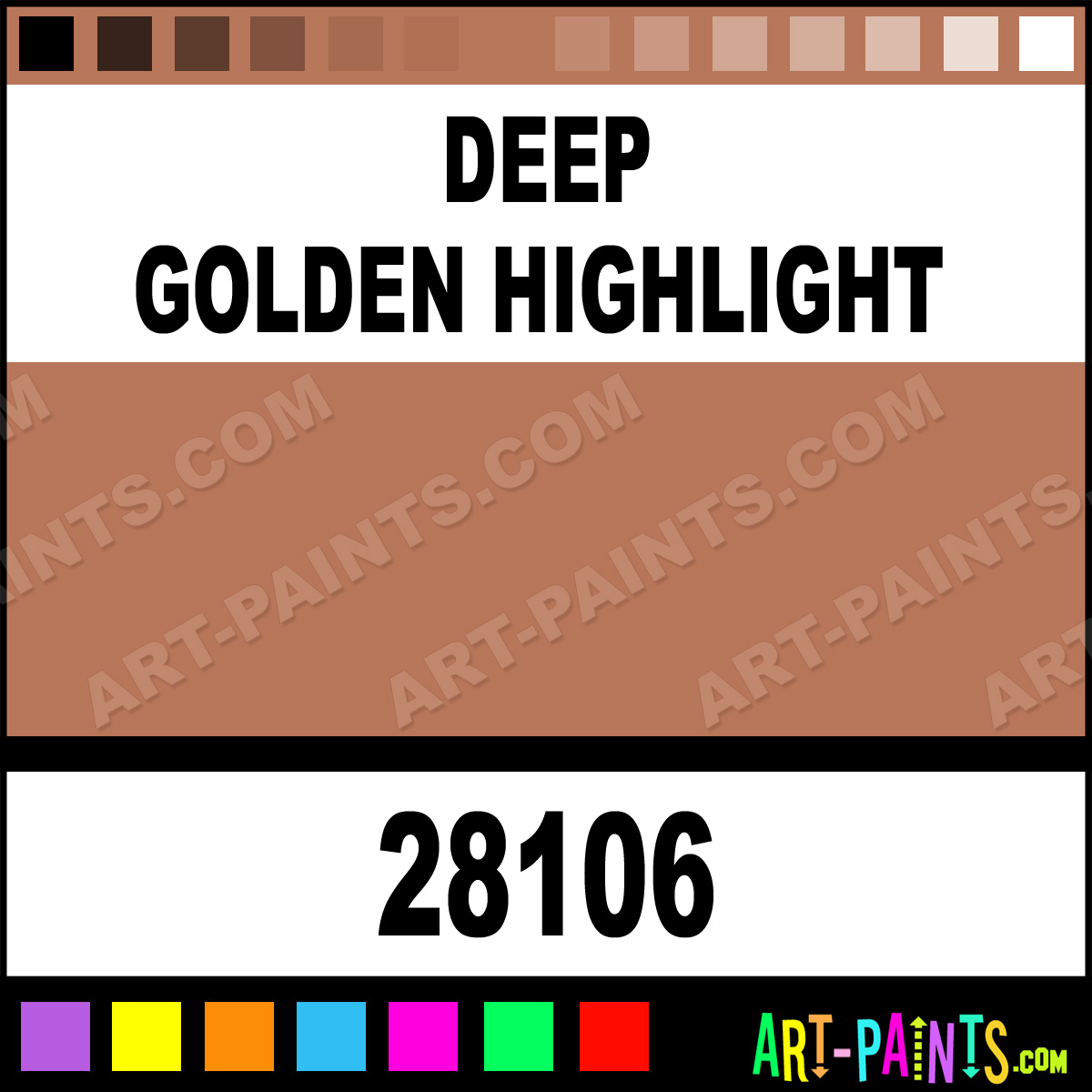 This beautiful Artist Airbrush shade is called Deep Golden Highlight, and comes from a company called Graftobian. Their product number, along with the HTML color code, RGB, and CMYK codes are listed below. This Beautiful Shade of Deep Golden Highlight and others can be found in the Graftobian Artist Art Spray Paint Gallery! Also be sure to browse through the other wonderful Professional Color Galleries to see more of Graftobian Artist Airbrush Brand Spray Paints and other Spray Paint Manufacturers. And as always, Paint Paint Paint!   -Art-Paints.com