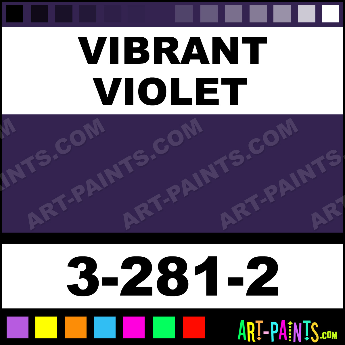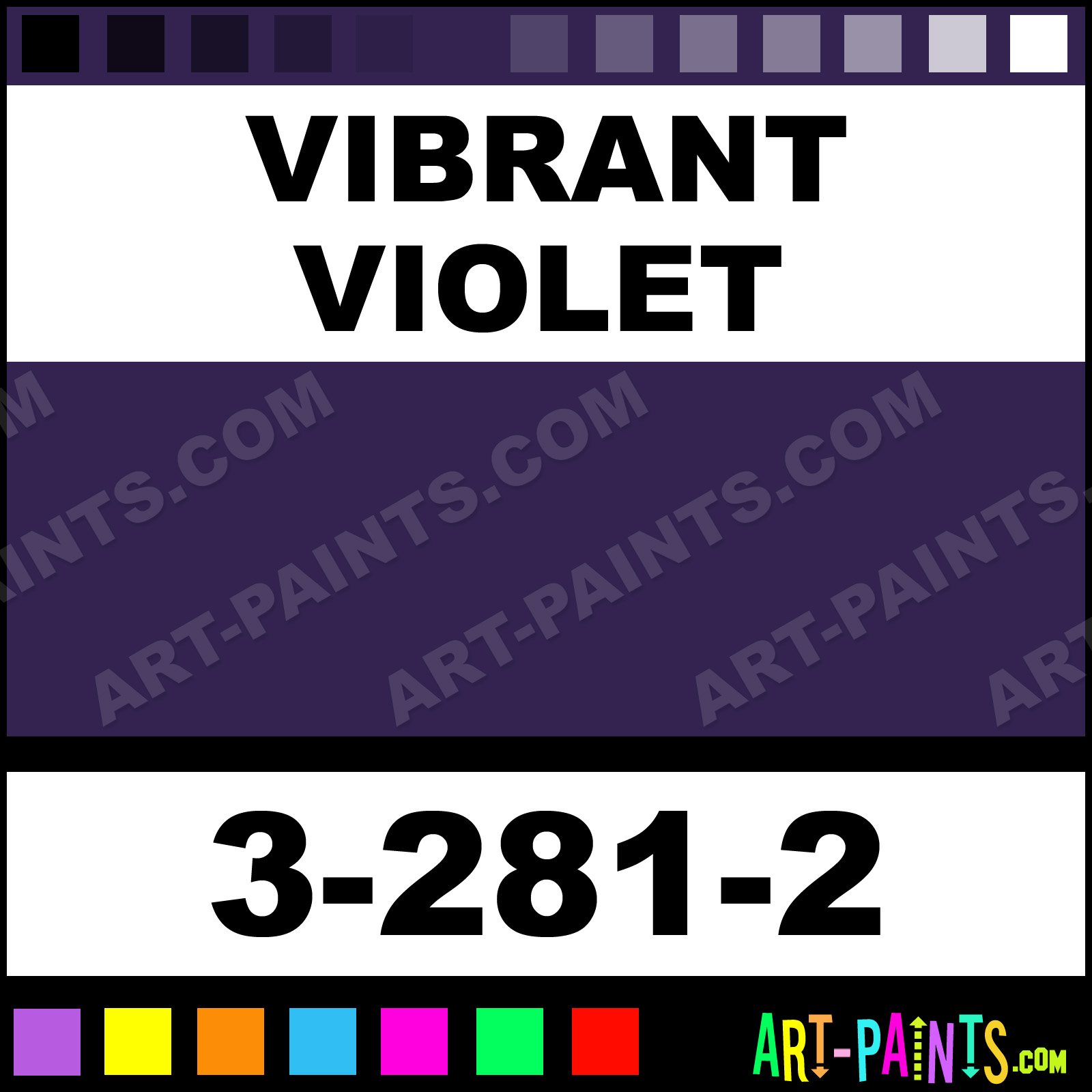 This beautiful Textile Standard Airbrush shade is called Vibrant Violet, and comes from a company called Iwata Medea. Their product number, along with the HTML color code, RGB, and CMYK codes are listed below. This Beautiful Shade of Vibrant Violet and others can be found in the Iwata Medea Textile Standard Art Spray Paint Gallery! Also be sure to browse through the other wonderful Professional Color Galleries to see more of Iwata Medea Textile Standard Airbrush Brand Spray Paints and other Spray Paint Manufacturers. And as always, Paint Paint Paint!   -Art-Paints.com