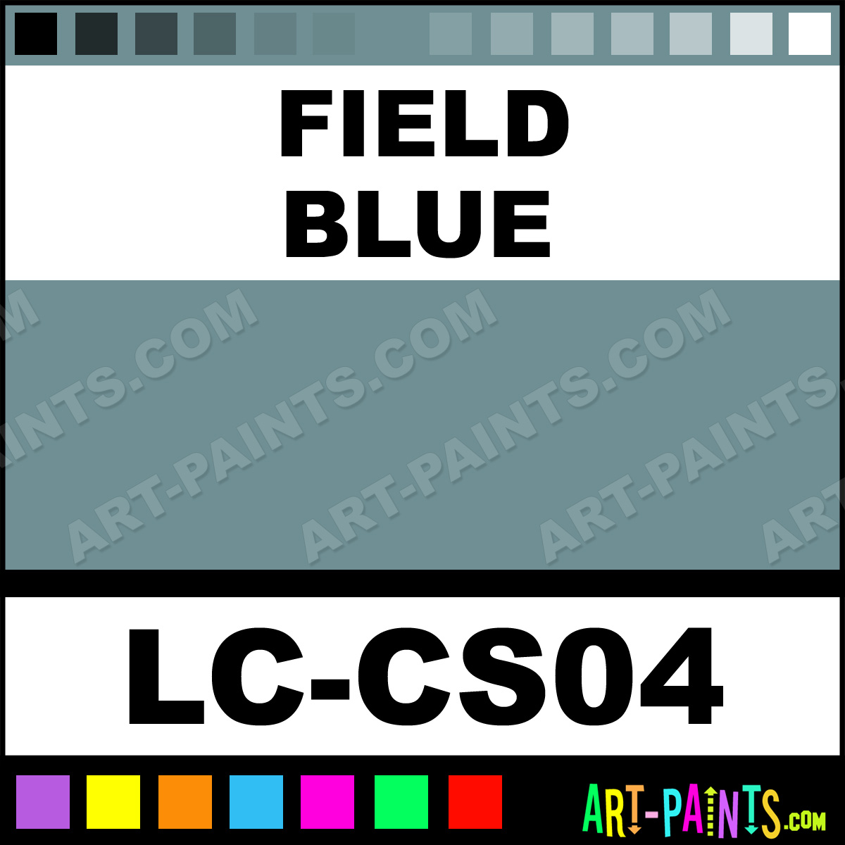This beautiful German Uniforms WWII Airbrush shade is called Field Blue, and comes from a company called Lifecolor. Their product number, along with the HTML color code, RGB, and CMYK codes are listed below. This Beautiful Shade of Field Blue and others can be found in the Lifecolor German Uniforms WWII Art Spray Paint Gallery! Also be sure to browse through the other wonderful Professional Color Galleries to see more of Lifecolor German Uniforms WWII Airbrush Brand Spray Paints and other Spray Paint Manufacturers. And as always, Paint Paint Paint!   -Art-Paints.com