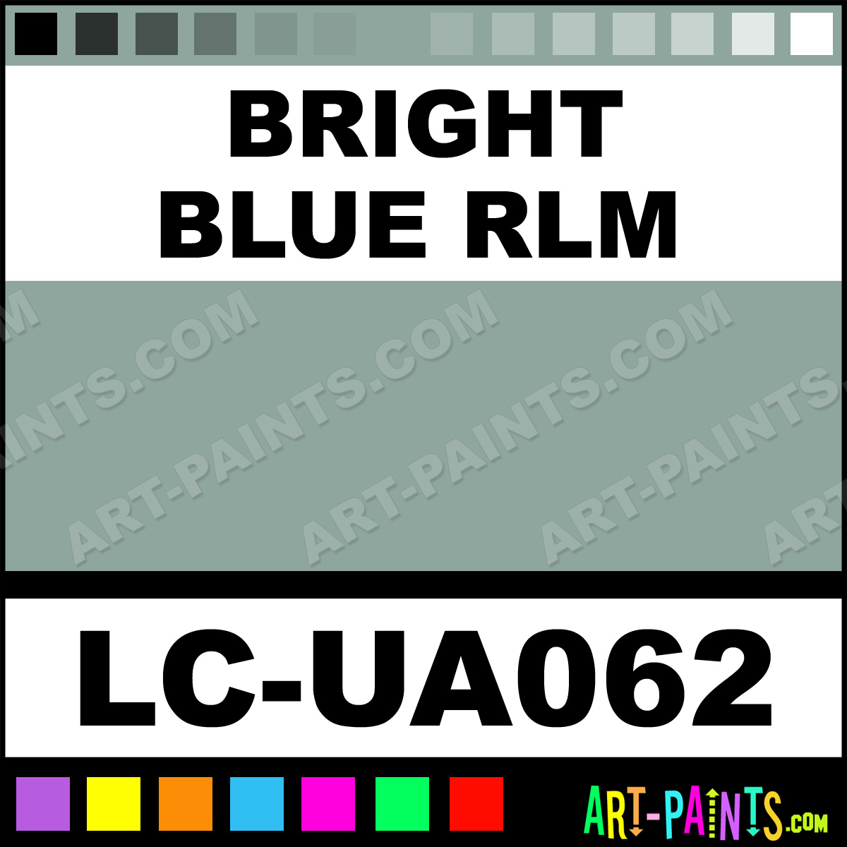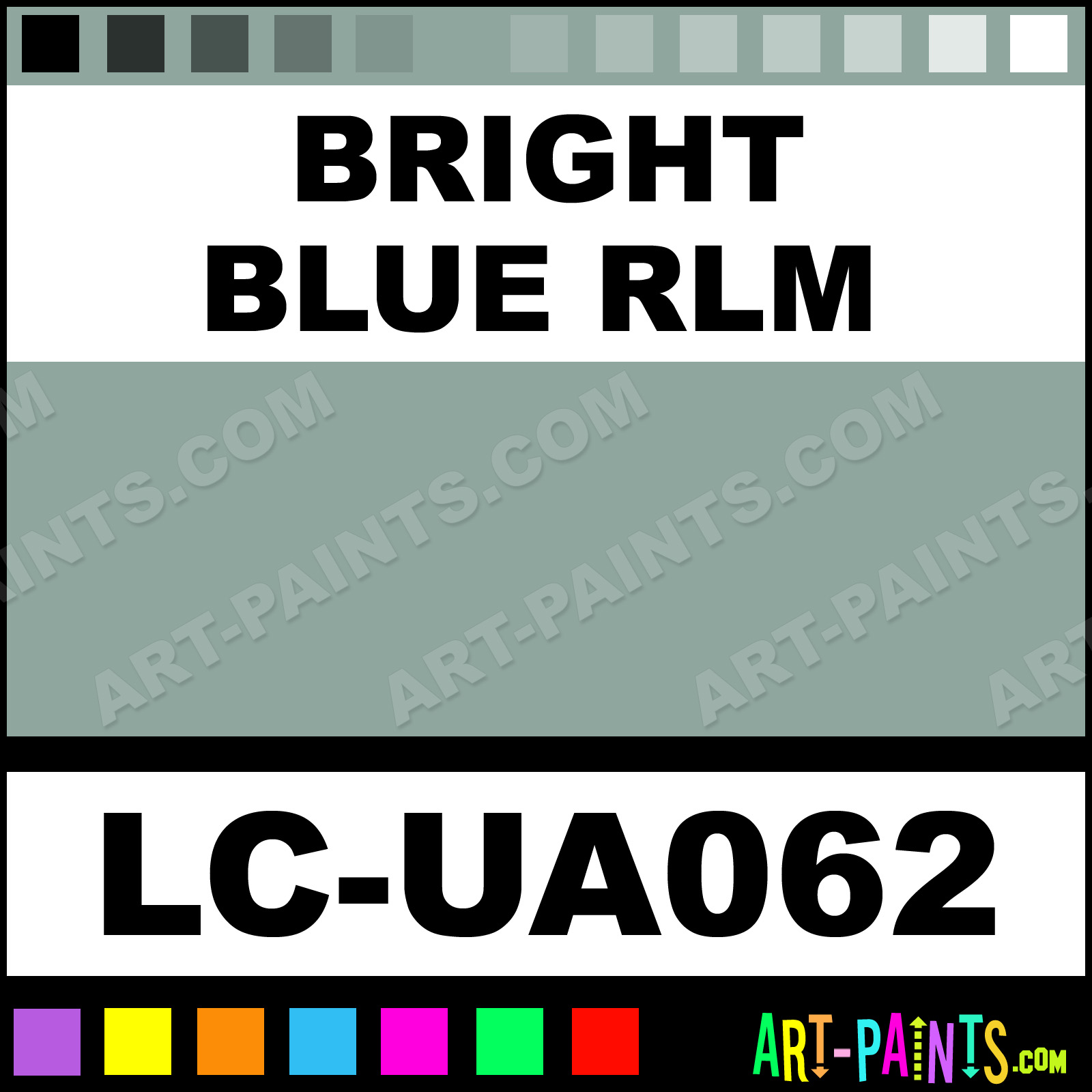 This beautiful UA Mimetic Airbrush shade is called Bright Blue RLM, and comes from a company called Lifecolor. Their product number, along with the HTML color code, RGB, and CMYK codes are listed below. This Beautiful Shade of Bright Blue RLM and others can be found in the Lifecolor UA Mimetic Art Spray Paint Gallery! Also be sure to browse through the other wonderful Professional Color Galleries to see more of Lifecolor UA Mimetic Airbrush Brand Spray Paints and other Spray Paint Manufacturers. And as always, Paint Paint Paint!   -Art-Paints.com