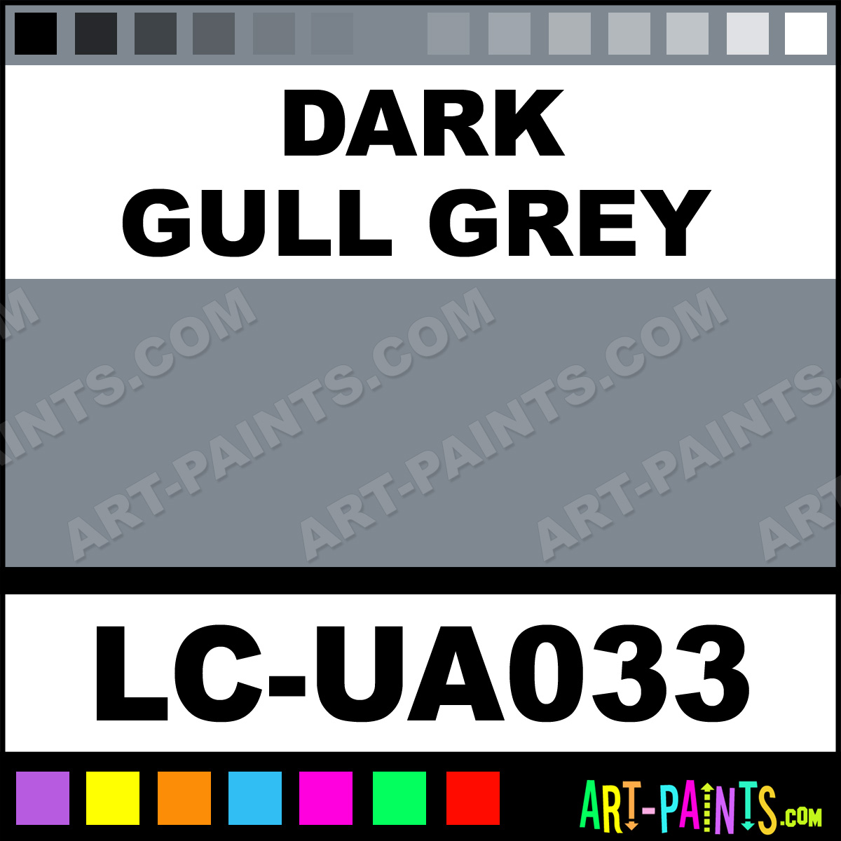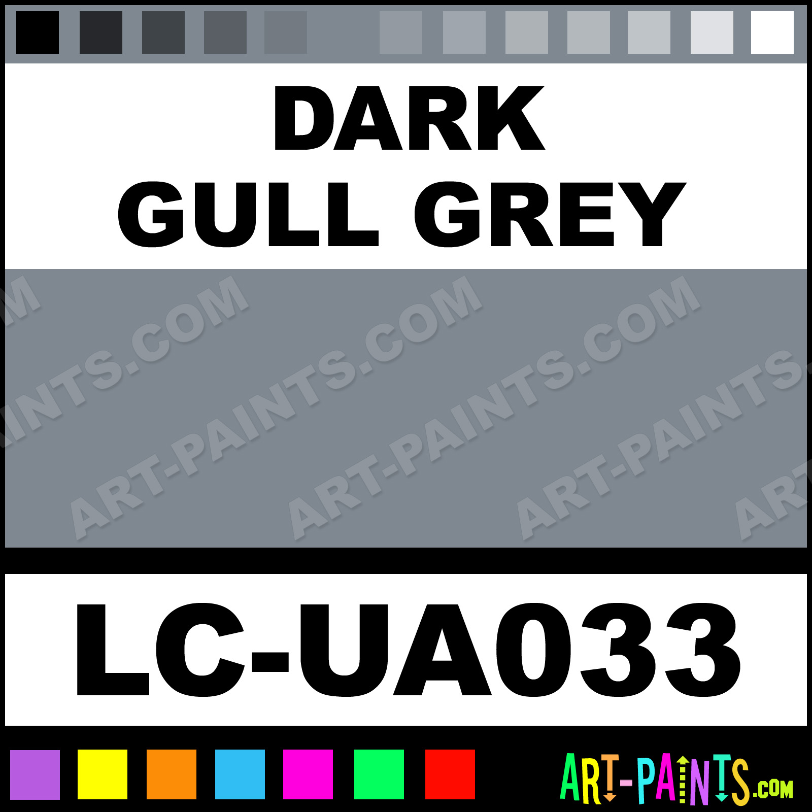 This beautiful UA Mimetic Airbrush shade is called Dark Gull Grey, and comes from a company called Lifecolor. Their product number, along with the HTML color code, RGB, and CMYK codes are listed below. This Beautiful Shade of Dark Gull Grey and others can be found in the Lifecolor UA Mimetic Art Spray Paint Gallery! Also be sure to browse through the other wonderful Professional Color Galleries to see more of Lifecolor UA Mimetic Airbrush Brand Spray Paints and other Spray Paint Manufacturers. And as always, Paint Paint Paint!   -Art-Paints.com