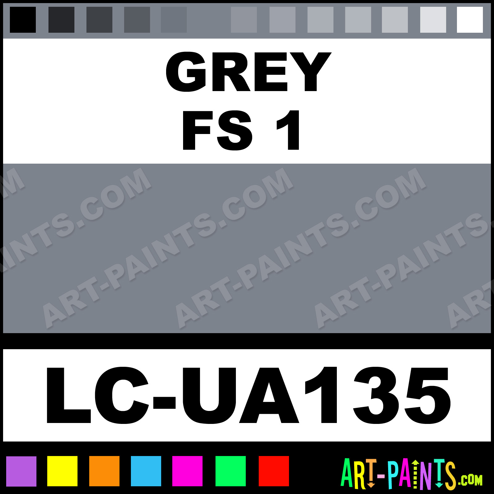 This beautiful UA Mimetic Airbrush shade is called Grey FS 1, and comes from a company called Lifecolor. Their product number, along with the HTML color code, RGB, and CMYK codes are listed below. This Beautiful Shade of Grey FS 1 and others can be found in the Lifecolor UA Mimetic Art Spray Paint Gallery! Also be sure to browse through the other wonderful Professional Color Galleries to see more of Lifecolor UA Mimetic Airbrush Brand Spray Paints and other Spray Paint Manufacturers. And as always, Paint Paint Paint!   -Art-Paints.com