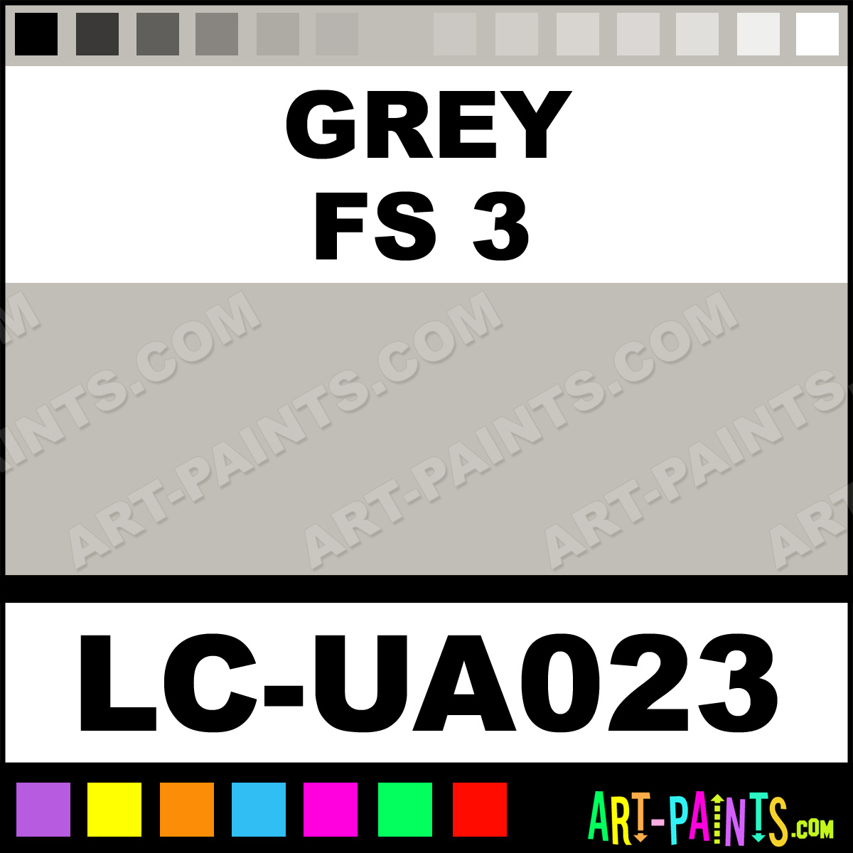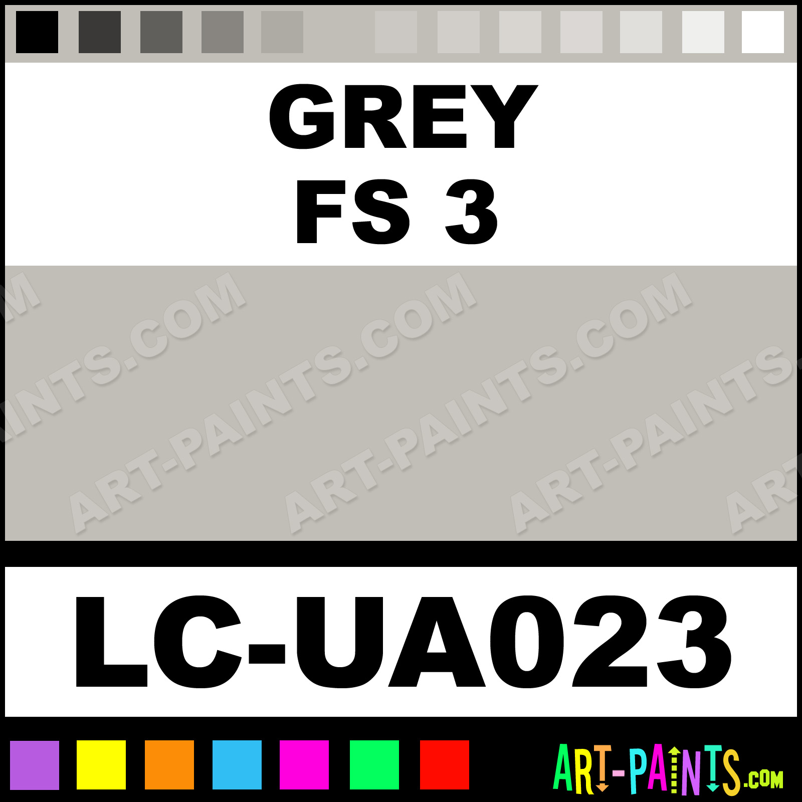 This beautiful UA Mimetic Airbrush shade is called Grey FS 3, and comes from a company called Lifecolor. Their product number, along with the HTML color code, RGB, and CMYK codes are listed below. This Beautiful Shade of Grey FS 3 and others can be found in the Lifecolor UA Mimetic Art Spray Paint Gallery! Also be sure to browse through the other wonderful Professional Color Galleries to see more of Lifecolor UA Mimetic Airbrush Brand Spray Paints and other Spray Paint Manufacturers. And as always, Paint Paint Paint!   -Art-Paints.com