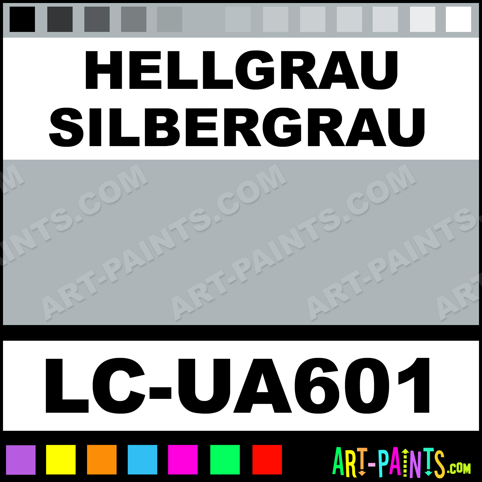 This beautiful UA Mimetic Airbrush shade is called Hellgrau Silbergrau, and comes from a company called Lifecolor. Their product number, along with the HTML color code, RGB, and CMYK codes are listed below. This Beautiful Shade of Hellgrau Silbergrau and others can be found in the Lifecolor UA Mimetic Art Spray Paint Gallery! Also be sure to browse through the other wonderful Professional Color Galleries to see more of Lifecolor UA Mimetic Airbrush Brand Spray Paints and other Spray Paint Manufacturers. And as always, Paint Paint Paint!   -Art-Paints.com