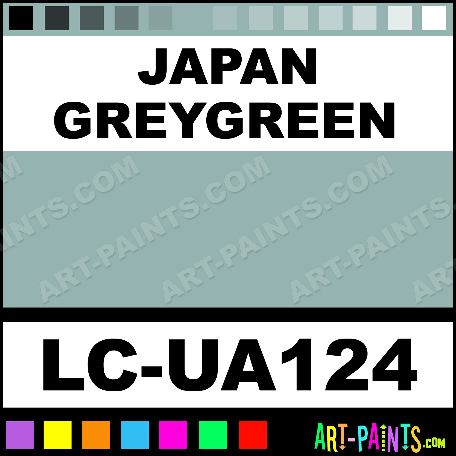 This beautiful UA Mimetic Airbrush shade is called Japan Greygreen, and comes from a company called Lifecolor. Their product number, along with the HTML color code, RGB, and CMYK codes are listed below. This Beautiful Shade of Japan Greygreen and others can be found in the Lifecolor UA Mimetic Art Spray Paint Gallery! Also be sure to browse through the other wonderful Professional Color Galleries to see more of Lifecolor UA Mimetic Airbrush Brand Spray Paints and other Spray Paint Manufacturers. And as always, Paint Paint Paint!   -Art-Paints.com
