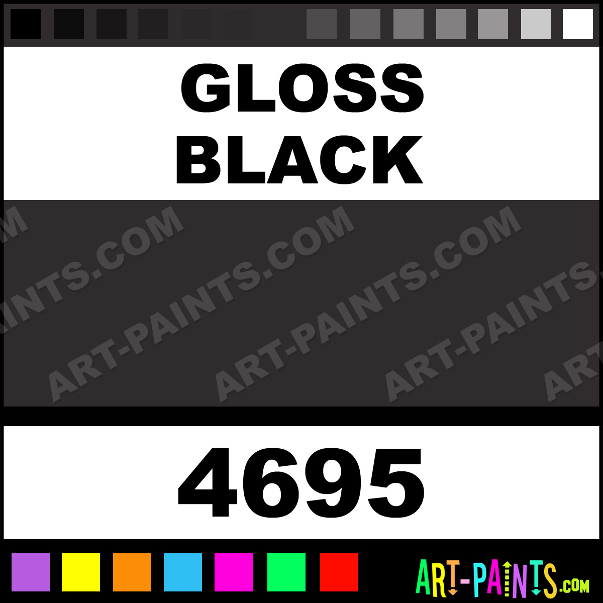 This beautiful Artist Airbrush shade is called Gloss Black, and comes from a company called Model Master. Their product number, along with the HTML color code, RGB, and CMYK codes are listed below. This Beautiful Shade of Gloss Black and others can be found in the Model Master Artist Art Spray Paint Gallery! Also be sure to browse through the other wonderful Professional Color Galleries to see more of Model Master Artist Airbrush Brand Spray Paints and other Spray Paint Manufacturers. And as always, Paint Paint Paint!   -Art-Paints.com