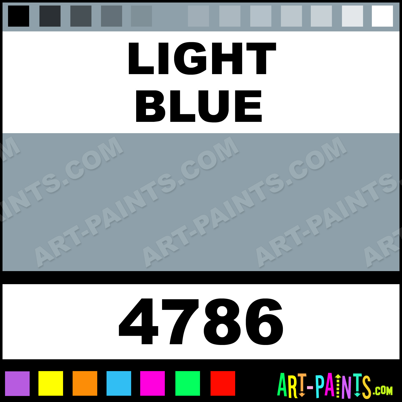 This beautiful Artist Airbrush shade is called Light Blue, and comes from a company called Model Master. Their product number, along with the HTML color code, RGB, and CMYK codes are listed below. This Beautiful Shade of Light Blue and others can be found in the Model Master Artist Art Spray Paint Gallery! Also be sure to browse through the other wonderful Professional Color Galleries to see more of Model Master Artist Airbrush Brand Spray Paints and other Spray Paint Manufacturers. And as always, Paint Paint Paint!   -Art-Paints.com