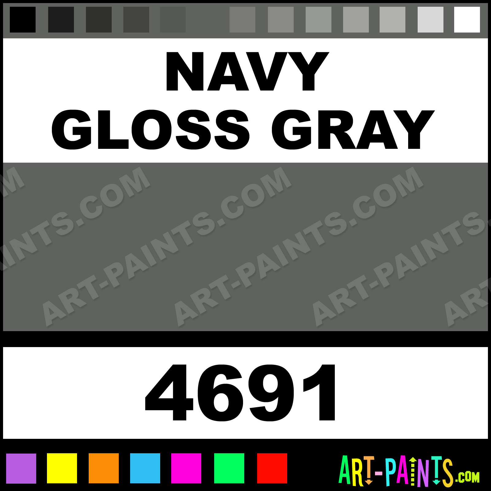 This beautiful Artist Airbrush shade is called Navy Gloss Gray, and comes from a company called Model Master. Their product number, along with the HTML color code, RGB, and CMYK codes are listed below. This Beautiful Shade of Navy Gloss Gray and others can be found in the Model Master Artist Art Spray Paint Gallery! Also be sure to browse through the other wonderful Professional Color Galleries to see more of Model Master Artist Airbrush Brand Spray Paints and other Spray Paint Manufacturers. And as always, Paint Paint Paint!   -Art-Paints.com