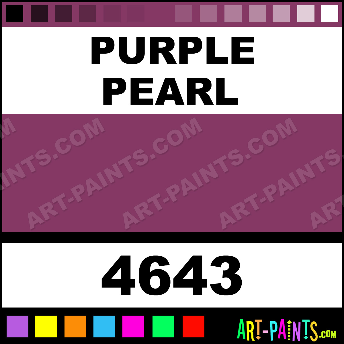 This beautiful Artist Airbrush shade is called Purple Pearl, and comes from a company called Model Master. Their product number, along with the HTML color code, RGB, and CMYK codes are listed below. This Beautiful Shade of Purple Pearl and others can be found in the Model Master Artist Art Spray Paint Gallery! Also be sure to browse through the other wonderful Professional Color Galleries to see more of Model Master Artist Airbrush Brand Spray Paints and other Spray Paint Manufacturers. And as always, Paint Paint Paint!   -Art-Paints.com