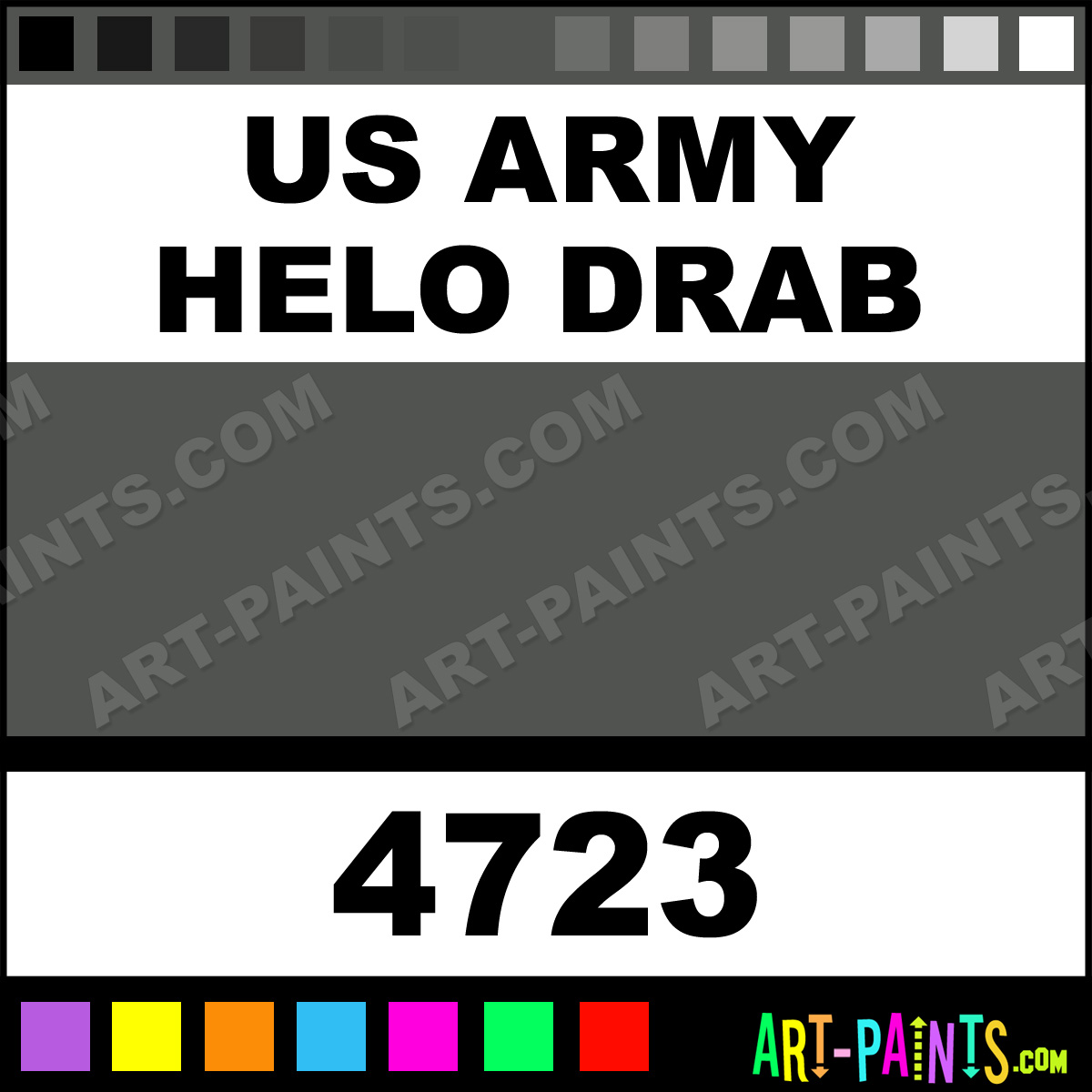 This beautiful Artist Airbrush shade is called US Army Helo Drab, and comes from a company called Model Master. Their product number, along with the HTML color code, RGB, and CMYK codes are listed below. This Beautiful Shade of US Army Helo Drab and others can be found in the Model Master Artist Art Spray Paint Gallery! Also be sure to browse through the other wonderful Professional Color Galleries to see more of Model Master Artist Airbrush Brand Spray Paints and other Spray Paint Manufacturers. And as always, Paint Paint Paint!   -Art-Paints.com