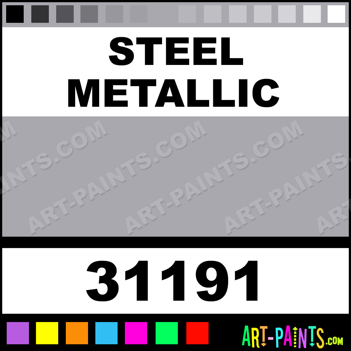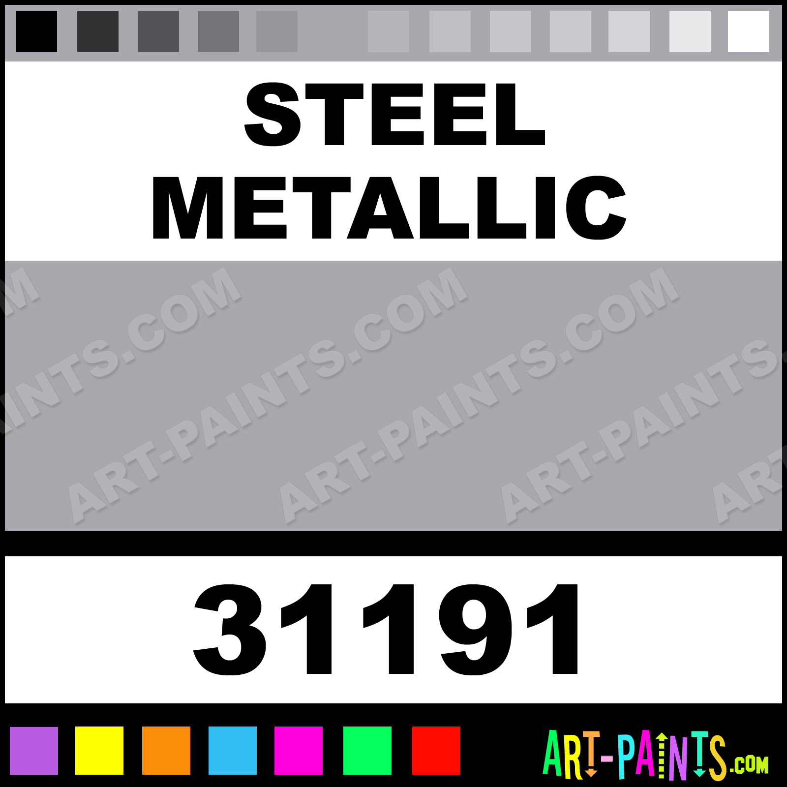 This beautiful Artist Airbrush shade is called Steel Metallic, and comes from a company called Revell. Their product number, along with the HTML color code, RGB, and CMYK codes are listed below. This Beautiful Shade of Steel Metallic and others can be found in the Revell Artist Art Spray Paint Gallery! Also be sure to browse through the other wonderful Professional Color Galleries to see more of Revell Artist Airbrush Brand Spray Paints and other Spray Paint Manufacturers. And as always, Paint Paint Paint!   -Art-Paints.com