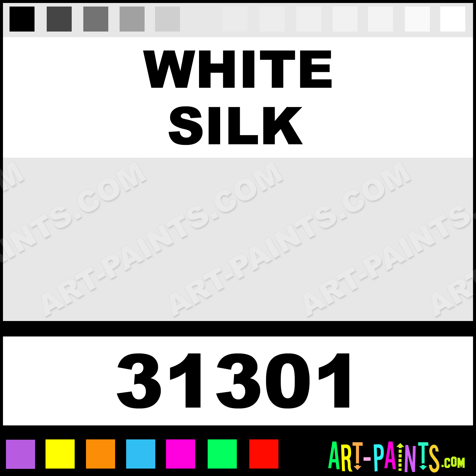 This beautiful Artist Airbrush shade is called White Silk, and comes from a company called Revell. Their product number, along with the HTML color code, RGB, and CMYK codes are listed below. This Beautiful Shade of White Silk and others can be found in the Revell Artist Art Spray Paint Gallery! Also be sure to browse through the other wonderful Professional Color Galleries to see more of Revell Artist Airbrush Brand Spray Paints and other Spray Paint Manufacturers. And as always, Paint Paint Paint!   -Art-Paints.com