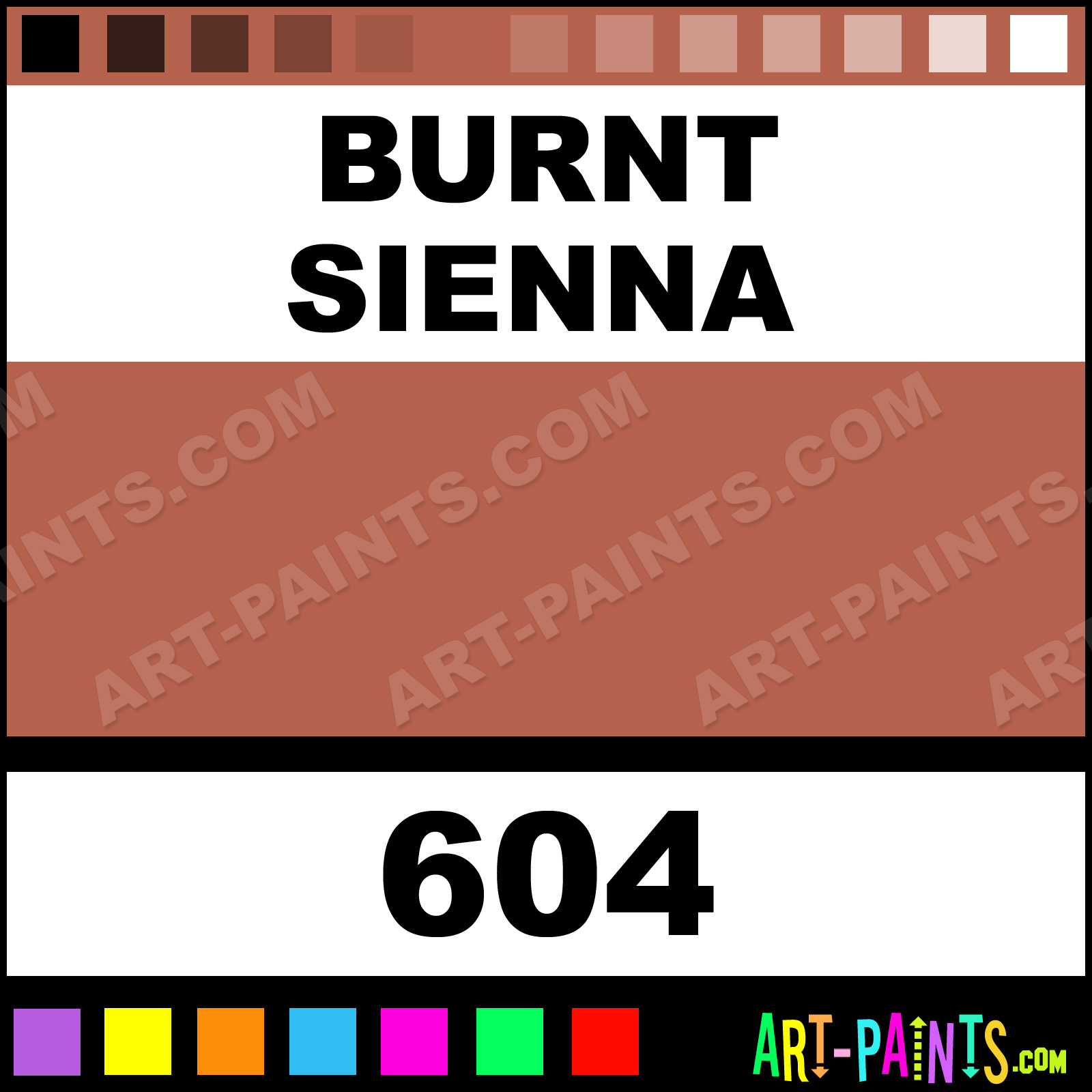 This beautiful Professional Airbrush shade is called Burnt Sienna, and comes from a company called Schmincke. Their product number, along with the HTML color code, RGB, and CMYK codes are listed below. This Beautiful Shade of Burnt Sienna and others can be found in the Schmincke Professional Art Spray Paint Gallery! Also be sure to browse through the other wonderful Professional Color Galleries to see more of Schmincke Professional Airbrush Brand Spray Paints and other Spray Paint Manufacturers. And as always, Paint Paint Paint!   -Art-Paints.com