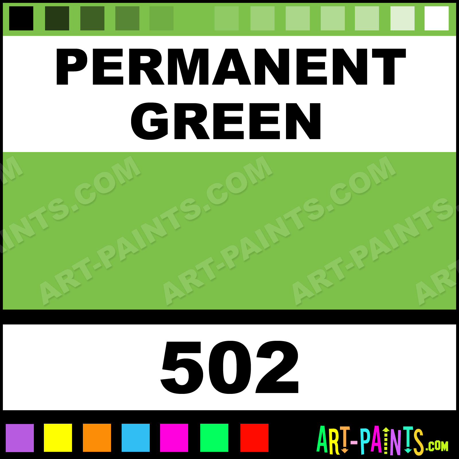 This beautiful Professional Airbrush shade is called Permanent Green, and comes from a company called Schmincke. Their product number, along with the HTML color code, RGB, and CMYK codes are listed below. This Beautiful Shade of Permanent Green and others can be found in the Schmincke Professional Art Spray Paint Gallery! Also be sure to browse through the other wonderful Professional Color Galleries to see more of Schmincke Professional Airbrush Brand Spray Paints and other Spray Paint Manufacturers. And as always, Paint Paint Paint!   -Art-Paints.com