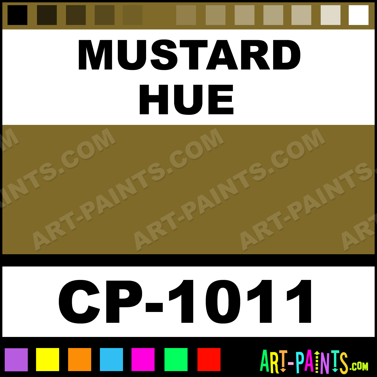 This beautiful Camouflage Face Paint Body Face shade is called Mustard, and comes from a company called Bobbie Weiner. Their product number, along with the HTML color code, RGB, and CMYK codes are listed below. This Beautiful Shade of Mustard and others can be found in the Bobbie Weiner Camouflage Face Paint Art Paint Gallery! Also be sure to browse through the other wonderful Professional Color Galleries of Face Paint, Makeup, Stage, Theater and Clown Paints to see more of Bobbie Weiner Camouflage Face Paint Body Brand Paints and other Body and Face Paint Manufacturers. And as always, Paint Paint Paint! -Art-Paints.com