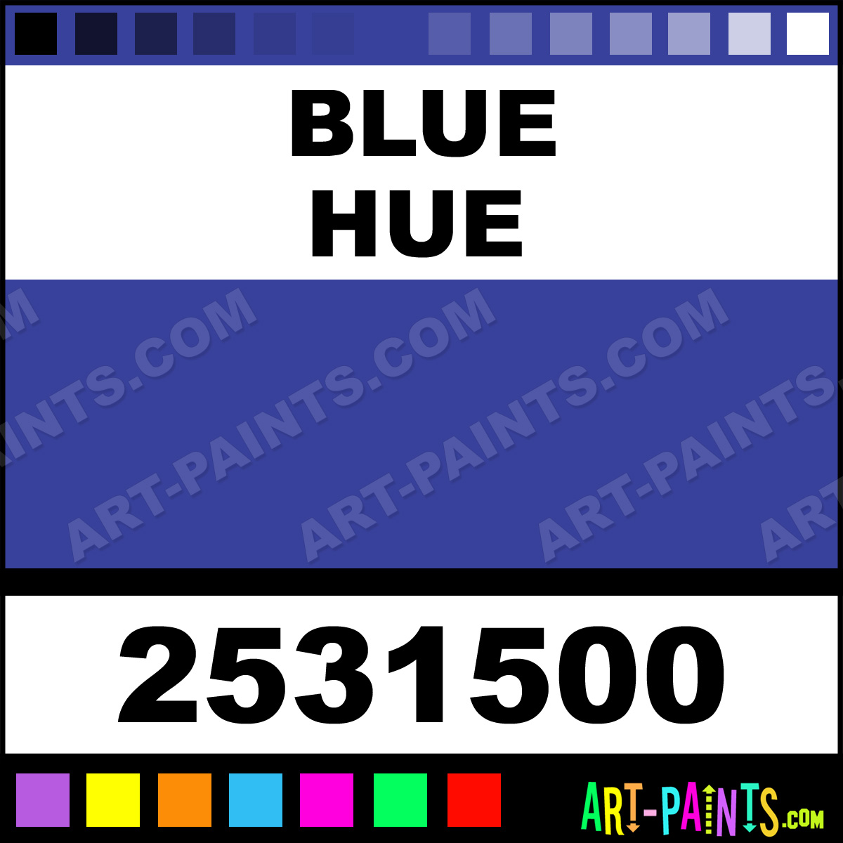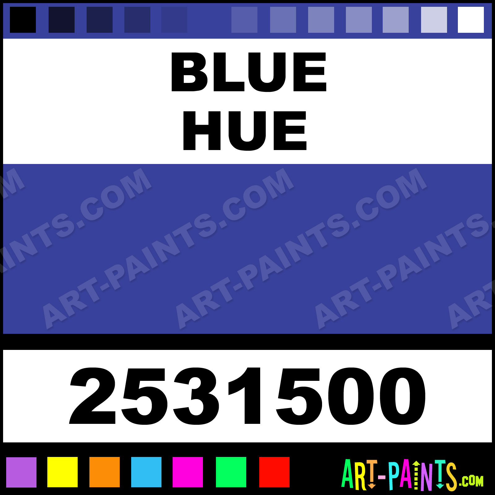 This beautiful Mr Color Body Face shade is called Blue, and comes from a company called Caran D-Ache. Their product number, along with the HTML color code, RGB, and CMYK codes are listed below. This Beautiful Shade of Blue and others can be found in the Caran D-Ache Mr Color Art Paint Gallery! Also be sure to browse through the other wonderful Professional Color Galleries of Face Paint, Makeup, Stage, Theater and Clown Paints to see more of Caran D-Ache Mr Color Body Brand Paints and other Body and Face Paint Manufacturers. And as always, Paint Paint Paint! -Art-Paints.com