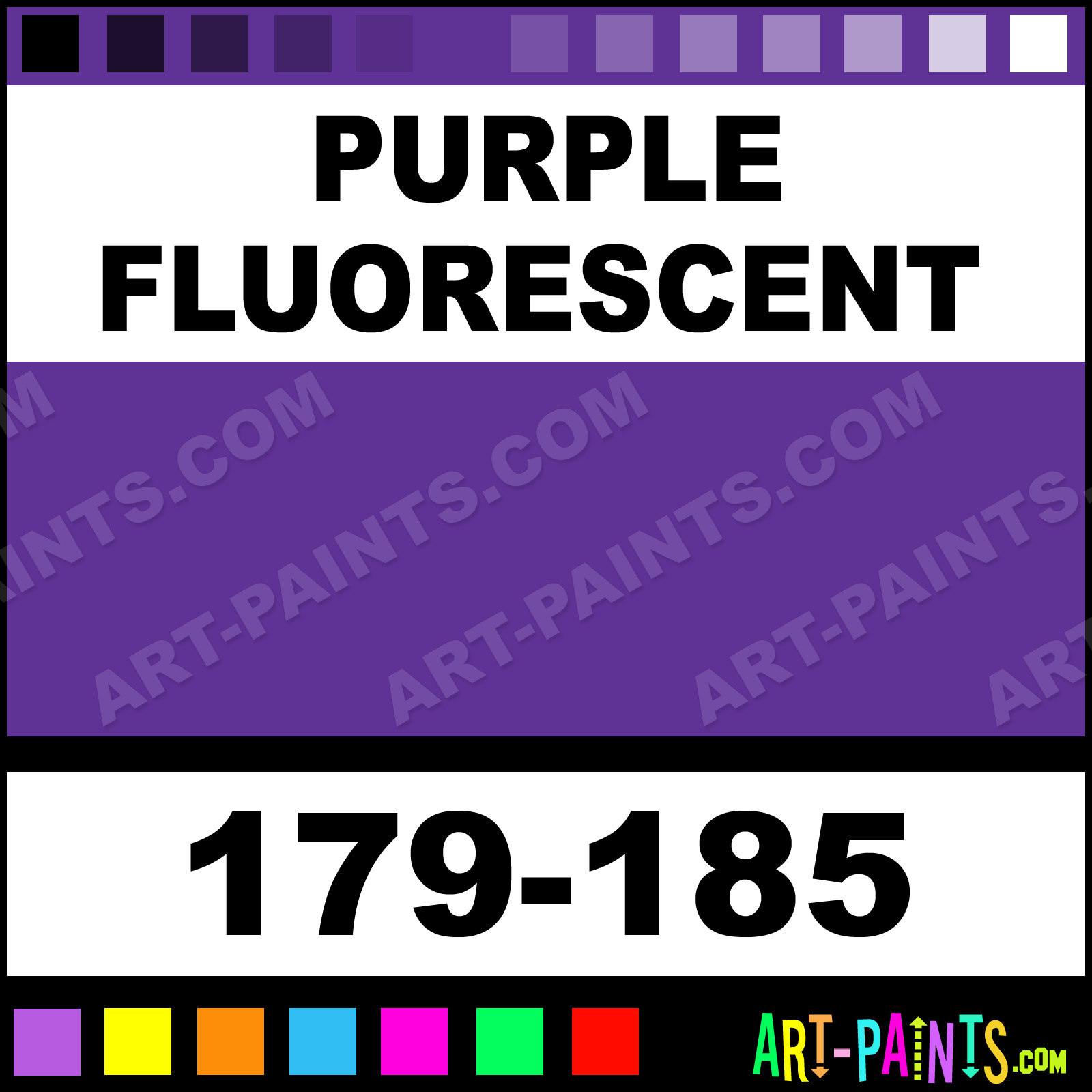This beautiful Costume Body Face shade is called Purple Fluorescent, and comes from a company called Colored Hairspray. Their product number, along with the HTML color code, RGB, and CMYK codes are listed below. This Beautiful Shade of Purple Fluorescent and others can be found in the Colored Hairspray Costume Art Paint Gallery! Also be sure to browse through the other wonderful Professional Color Galleries of Face Paint, Makeup, Stage, Theater and Clown Paints to see more of Colored Hairspray Costume Body Brand Paints and other Body and Face Paint Manufacturers. And as always, Paint Paint Paint! -Art-Paints.com