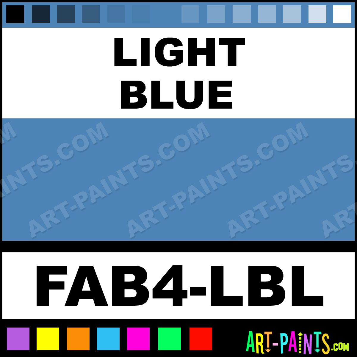 This beautiful Paint Body Face shade is called Light Blue, and comes from a company called FAB. Their product number, along with the HTML color code, RGB, and CMYK codes are listed below. This Beautiful Shade of Light Blue and others can be found in the FAB Paint Art Paint Gallery! Also be sure to browse through the other wonderful Professional Color Galleries of Face Paint, Makeup, Stage, Theater and Clown Paints to see more of FAB Paint Body Brand Paints and other Body and Face Paint Manufacturers. And as always, Paint Paint Paint! -Art-Paints.com
