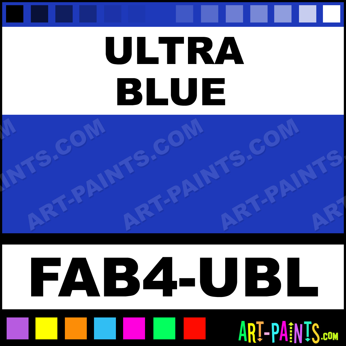 This beautiful Paint Body Face shade is called Ultra Blue, and comes from a company called FAB. Their product number, along with the HTML color code, RGB, and CMYK codes are listed below. This Beautiful Shade of Ultra Blue and others can be found in the FAB Paint Art Paint Gallery! Also be sure to browse through the other wonderful Professional Color Galleries of Face Paint, Makeup, Stage, Theater and Clown Paints to see more of FAB Paint Body Brand Paints and other Body and Face Paint Manufacturers. And as always, Paint Paint Paint! -Art-Paints.com