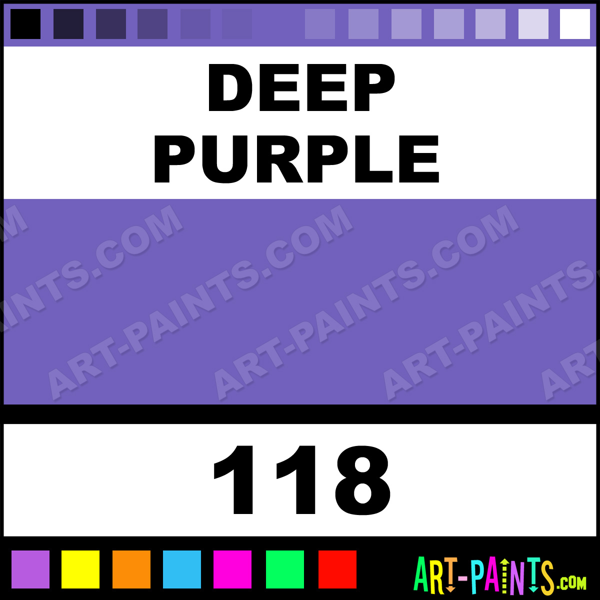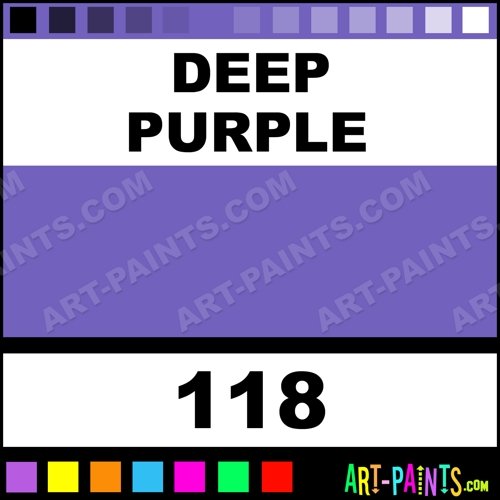 This beautiful Paint Body Face shade is called Deep Purple, and comes from a company called Fardel. Their product number, along with the HTML color code, RGB, and CMYK codes are listed below. This Beautiful Shade of Deep Purple and others can be found in the Fardel Paint Art Paint Gallery! Also be sure to browse through the other wonderful Professional Color Galleries of Face Paint, Makeup, Stage, Theater and Clown Paints to see more of Fardel Paint Body Brand Paints and other Body and Face Paint Manufacturers. And as always, Paint Paint Paint! -Art-Paints.com