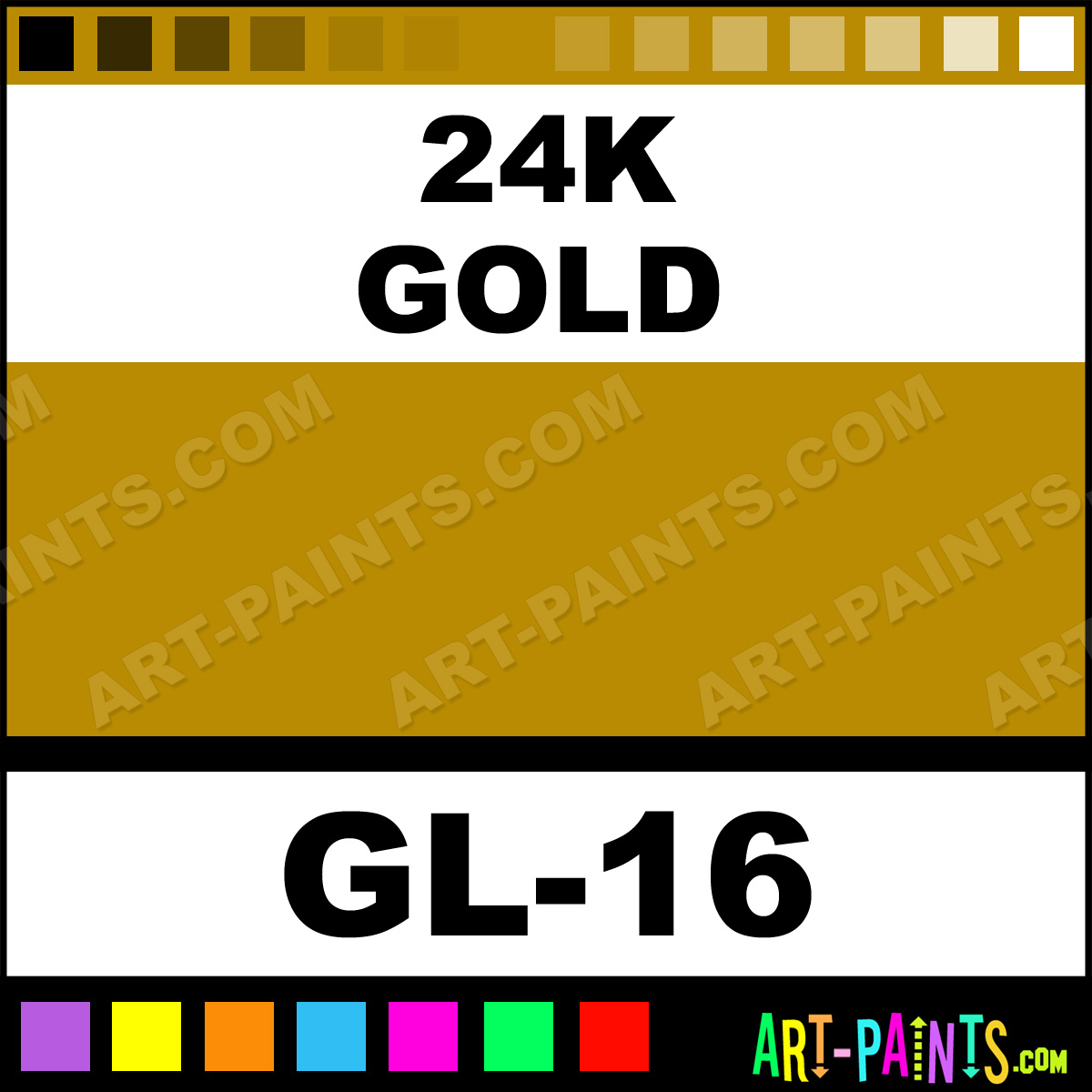 This beautiful Cosmetic Glitter Body Face shade is called 24k Gold, and comes from a company called GRL. Their product number, along with the HTML color code, RGB, and CMYK codes are listed below. This Beautiful Shade of 24k Gold and others can be found in the GRL Cosmetic Glitter Art Paint Gallery! Also be sure to browse through the other wonderful Professional Color Galleries of Face Paint, Makeup, Stage, Theater and Clown Paints to see more of GRL Cosmetic Glitter Body Brand Paints and other Body and Face Paint Manufacturers. And as always, Paint Paint Paint! -Art-Paints.com