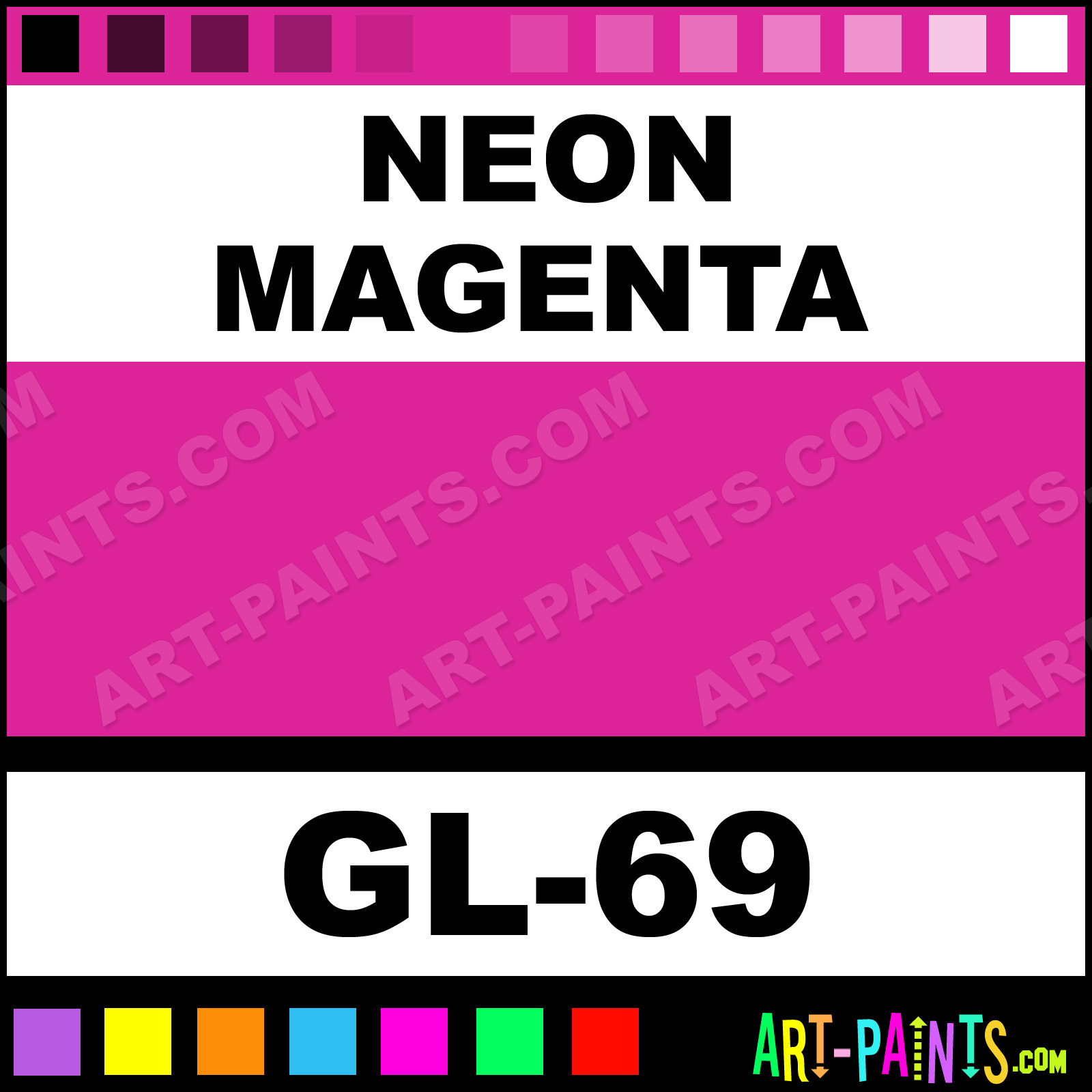 This beautiful Cosmetic Glitter Body Face shade is called Neon Magenta, and comes from a company called GRL. Their product number, along with the HTML color code, RGB, and CMYK codes are listed below. This Beautiful Shade of Neon Magenta and others can be found in the GRL Cosmetic Glitter Art Paint Gallery! Also be sure to browse through the other wonderful Professional Color Galleries of Face Paint, Makeup, Stage, Theater and Clown Paints to see more of GRL Cosmetic Glitter Body Brand Paints and other Body and Face Paint Manufacturers. And as always, Paint Paint Paint! -Art-Paints.com