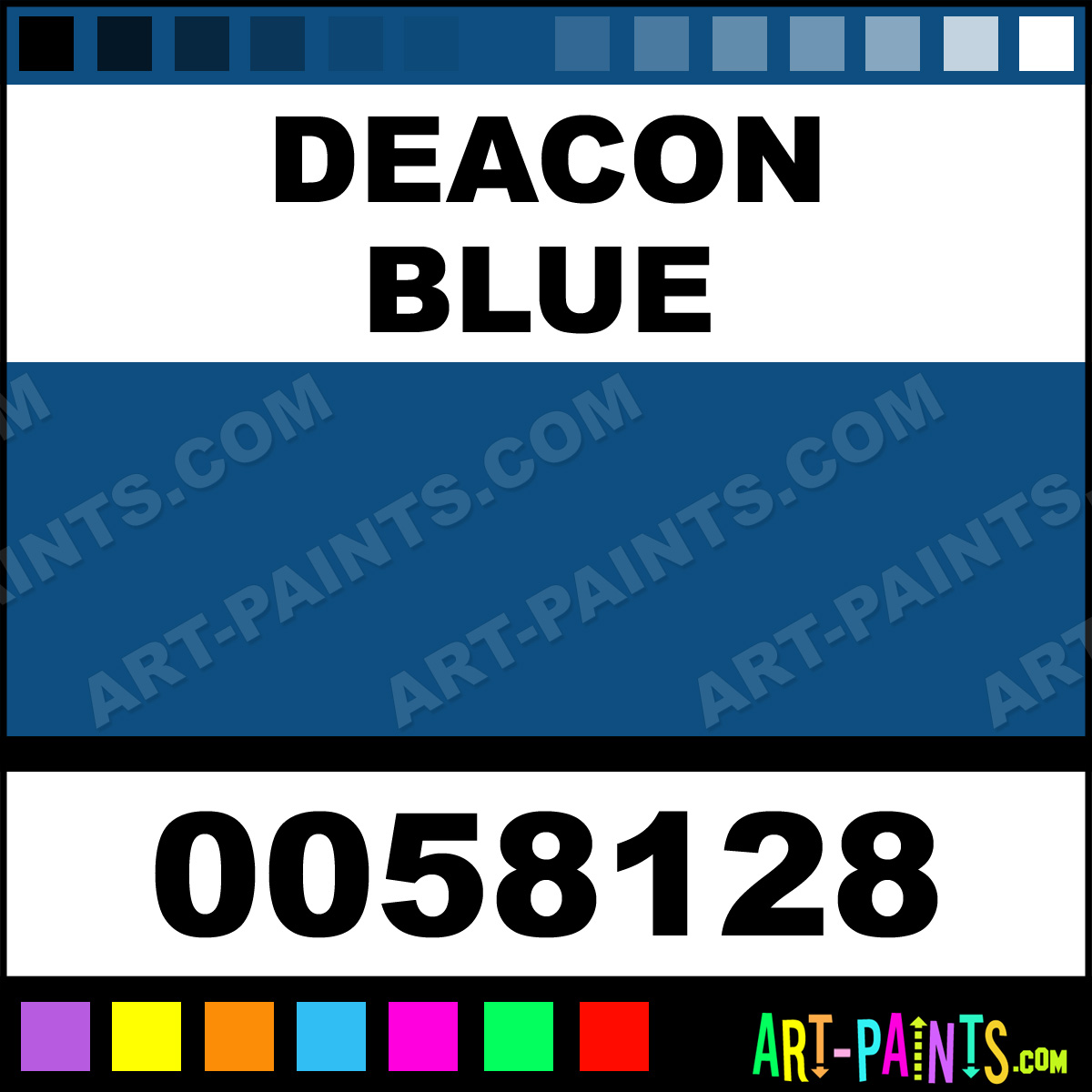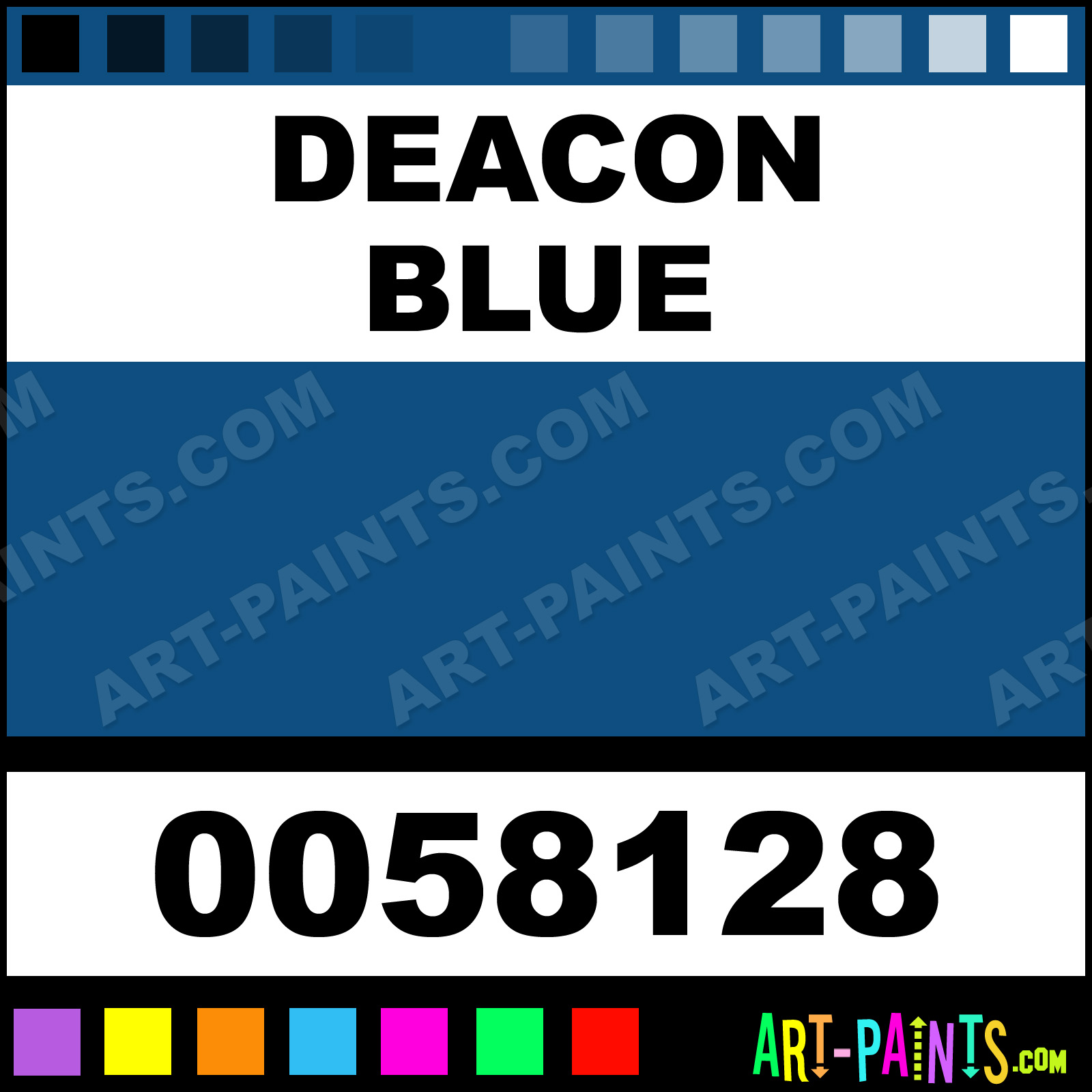 This beautiful Makeup Body Face shade is called Deacon Blue, and comes from a company called Glitter Wear. Their product number, along with the HTML color code, RGB, and CMYK codes are listed below. This Beautiful Shade of Deacon Blue and others can be found in the Glitter Wear Makeup Art Paint Gallery! Also be sure to browse through the other wonderful Professional Color Galleries of Face Paint, Makeup, Stage, Theater and Clown Paints to see more of Glitter Wear Makeup Body Brand Paints and other Body and Face Paint Manufacturers. And as always, Paint Paint Paint! -Art-Paints.com